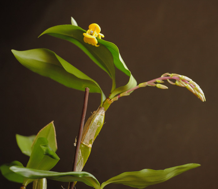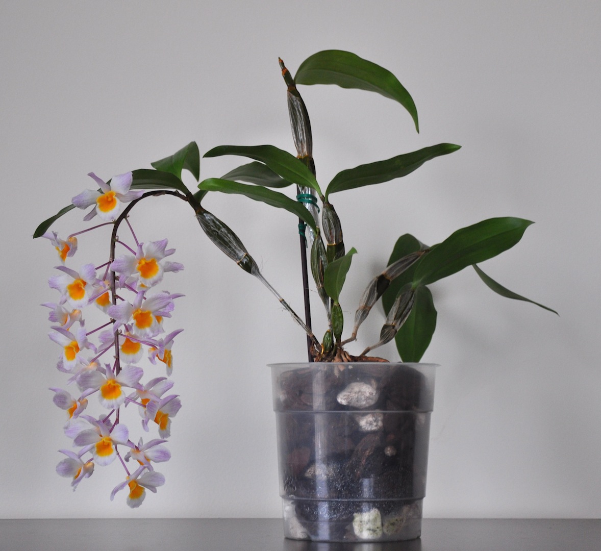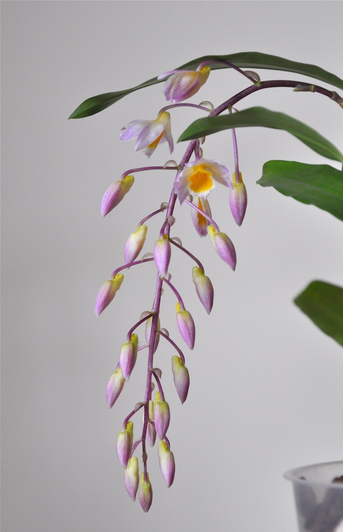 Z ciekawszych, u mnie, to kwitnienie nowego nabytku od KATPIO Dendrobium farmeri. Samo kwitnienie nie jest moją zasługą, ale fakt, że pędu kwiatowego nie zmarnowałam, bardzo cieszy