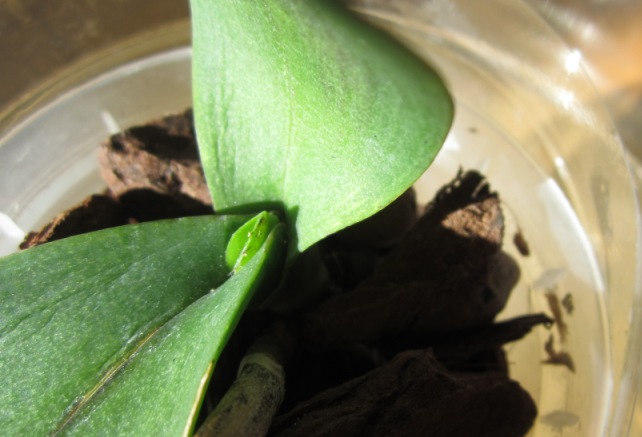 Potem zamoczyłam liście storczyka w czystej deszczówce na kilka godzin, by nawodnić je ile tylko jest to możliwe. Osuszyłam papierową chusteczką, miejsce w którym powinien być najmłodszy listek. Po obeschnięciu, storczyk został nasadzony w docelowym podłożu z zastosowaniem metody podsiąkowej zwanej knotową.