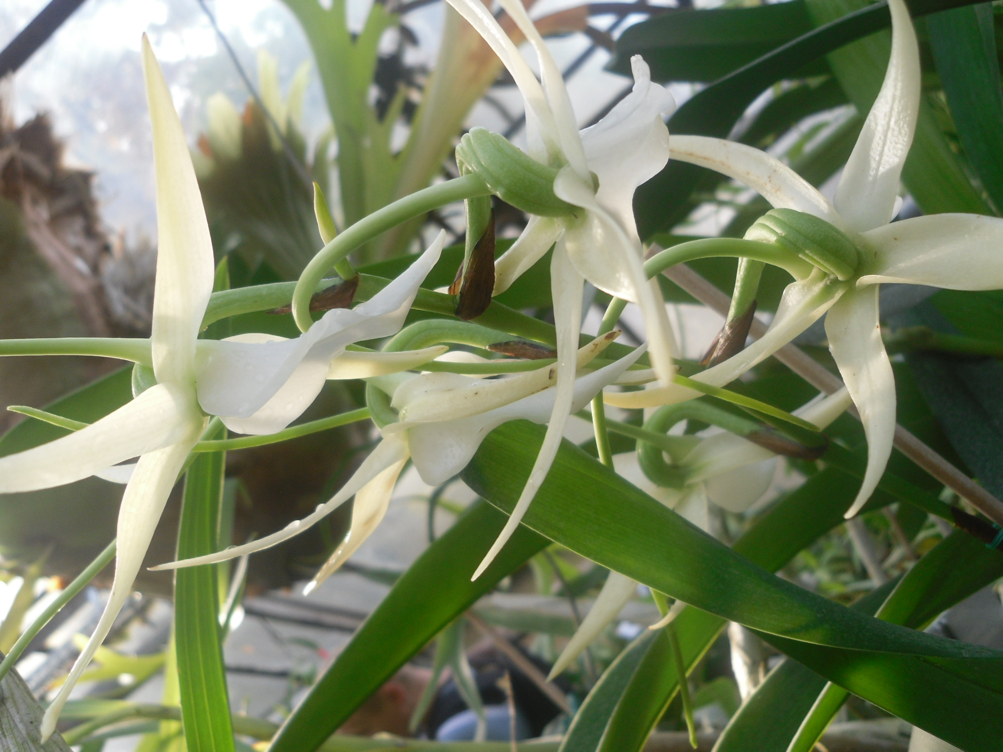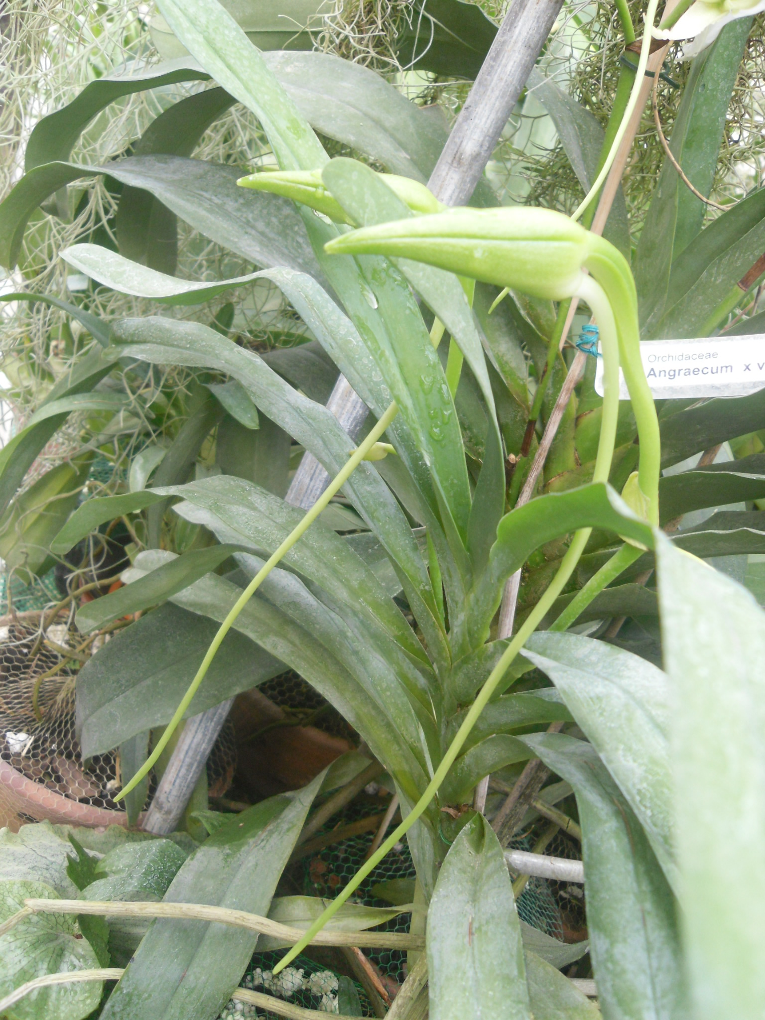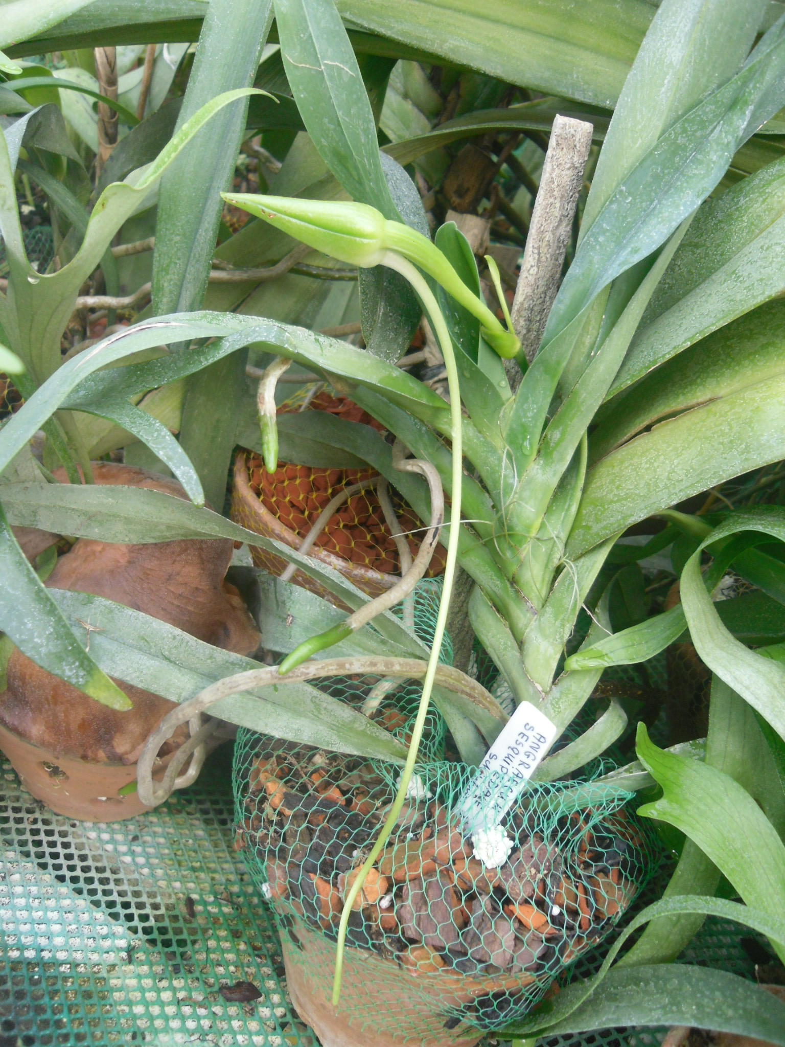 Kwiat jeszcze nieotworzony. Ale popatrzcie na długość ostrogi. Podobno jeden z egzemplarzy Angraecum sesquipedale nie otwiera kwiatów, jeżeli jego ostroga jest krótsza niż 27 cm.