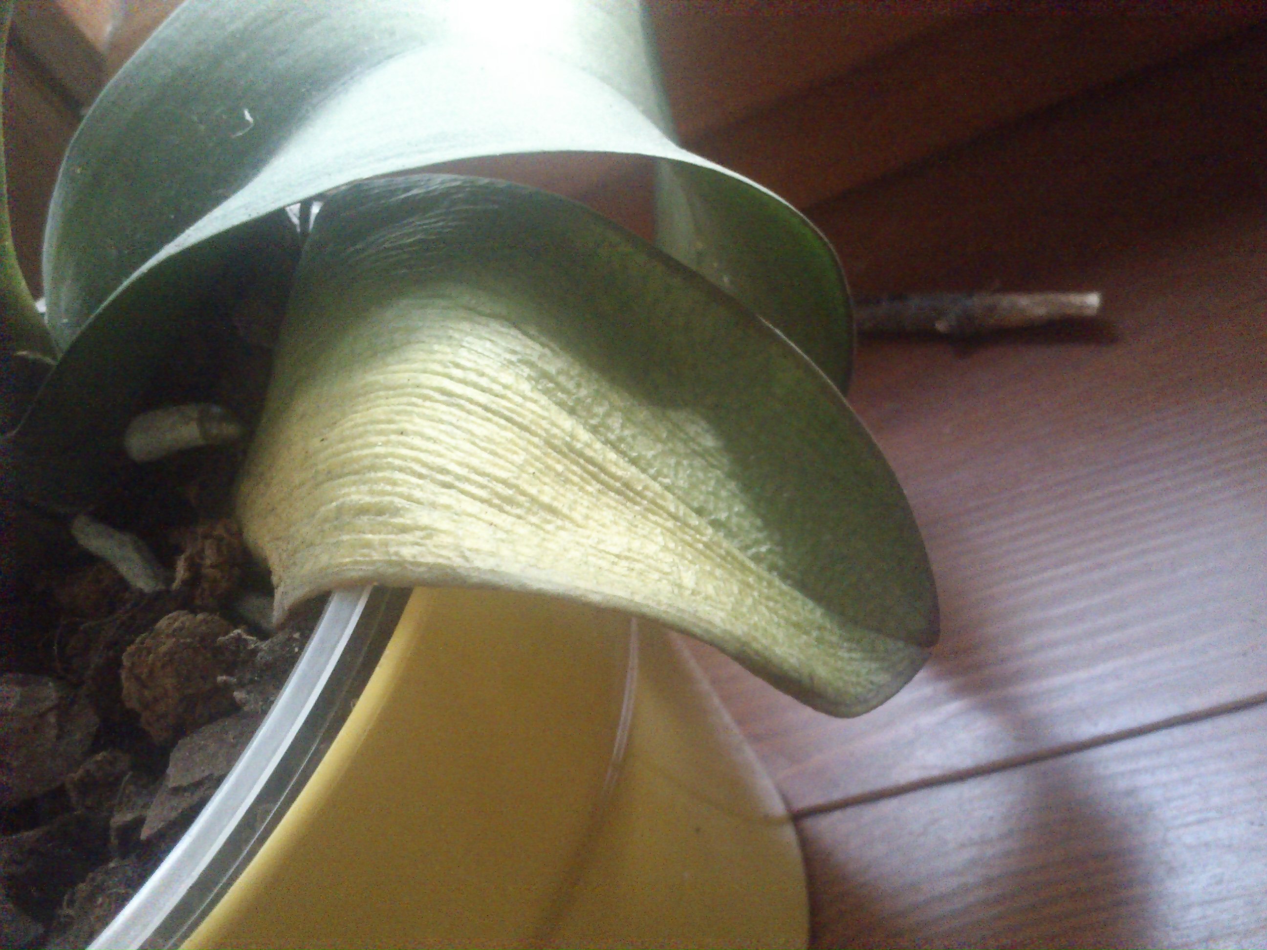 Domyślam się, że stan ten spowodowało zalanie kwiatu, ale co dalej? Do tej pory podlewany był tylko odrobinę raz w tygodniu (najwidoczniej za często), stoi na parapecie od południowej strony (tuż za oknem rośnie brzoza która osłania storczyki przed ostrymi promieniami słońca), nawoziłam go zgodnie z instrukcjami na nawozie.