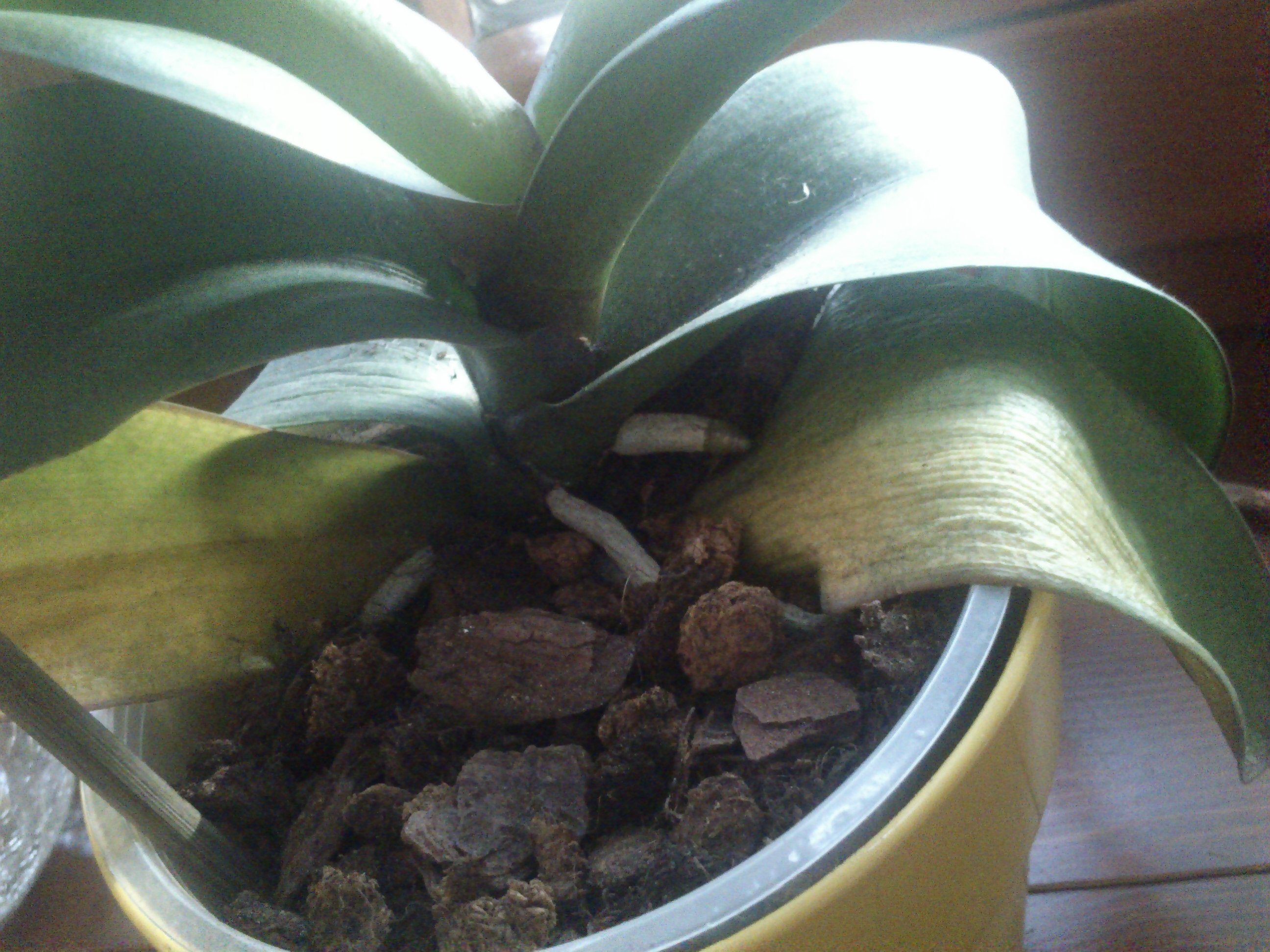 Nowe korzenie rosną, to dobrze. Zżółkły najstarsze liście ponieważ roślina próbuje się ratować i "zużywa" najstarsze liście. Dlaczego zgniły korzenie? Od stania w takich pięknych osłonkach. Założę się, że po podlaniu rośliny stały w tych osłonkach, z korzeniami zalanymi wodą. 95% padnięć phalanenopsisa jest związanych z przelaniem i zgniciem korzeni.
