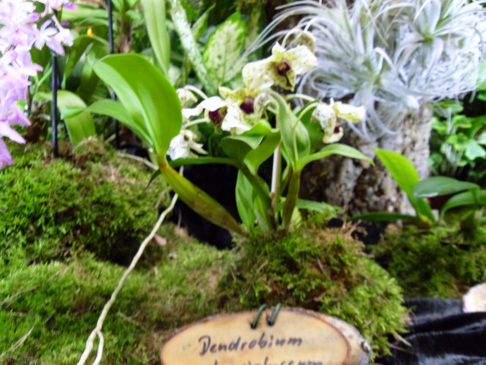 Przepraszam że zdjęcia nie są ostre. W jednej ręce miałam zakupy, w drugiej torebkę, a trzecią pstrykałam takie zdjęcia ale lepsze takie, niż żadne. Było dużo bulbophyllum, malutkich, dorosłych phalaenopsis. Katleje były w dużym wyborze. Było kilka Bifrenaria harrisoniae i atropururea. Widziałam różne chysis, zygopetala i najrozmaitsze krzyżówki marketowe. Śpiochy miał tylko producent z Czech i w małym wyborze ale baaaardzo dorodne. Mnie nic nie powaliło. Aby nie wracać ,,na pusto,, kupiłam Catasetum Sumani (C. pileatum x C. saccatum), niezwykle dorodne, z trzema nowymi psb oraz Rhyncholaelia digbyana x glauca = Aristocrat. Może lepiej się będzie sprawować od R. digbyana, która u mnie udaje faceta i tylko przyrasta. Poza Czechami byli wystawcy z Niemiec ale zabrakło Karge"go. Zachęcam innych do wstawiania zdjęć i komentarzy. Marta