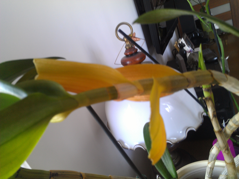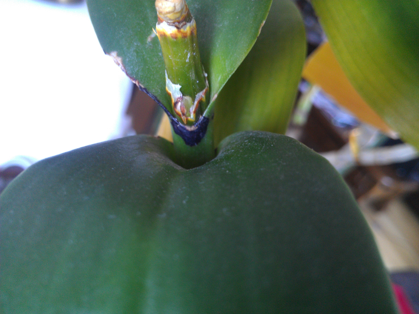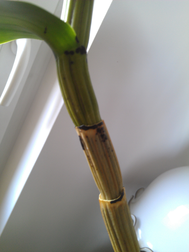 Mam prośbę, w rozpoznaniu co to za wykwity na moim storczyku się znalazły. Dodatkowo, zaczęły żółknąć liście. Na razie na jednym pędzie. Storczyk miał standardową doniczkę, przesadziłem go w nową z nowym podłożem. Załączam zdjęcie i dziękuję za odpowiedź