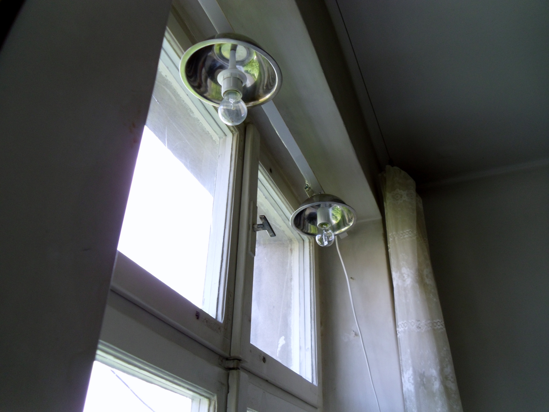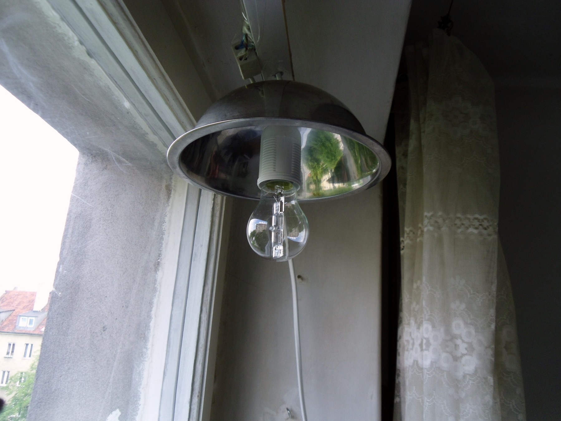Już wszystko działa. Pobór pojedynczej żarówki 26 watt. To jest północne okno. Od kiedy urosły lipy dociera do niego mniej światła.