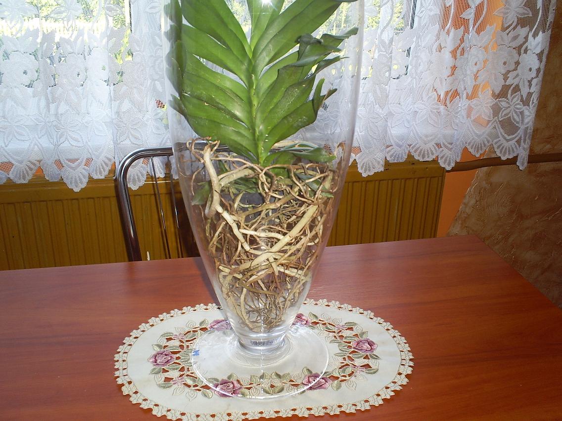 Vanda wypuściła dużo - ogrom korzeni z czego jestem bardzo zadowolona - ale dziwi mnie/ zastanawia fakt - jak zaczął się wzrost korzeni to zaczęła szaleć - korzenie najpierw wyrastały od dołu rośliny, potem od środka a teraz najnowszy korzeń wyszedł w 2 rzędzie listeczków od góry . Wszystkie korzenie są grubości kciuka , wygląda teraz to dojść śmiesznie ale czy nie oznacza to że roślina w jakiś sposób stara się "ratować" czy po prostu ma się dobrze i po okresie "spoczynku" i utracie korzeni stara się zregenerować.