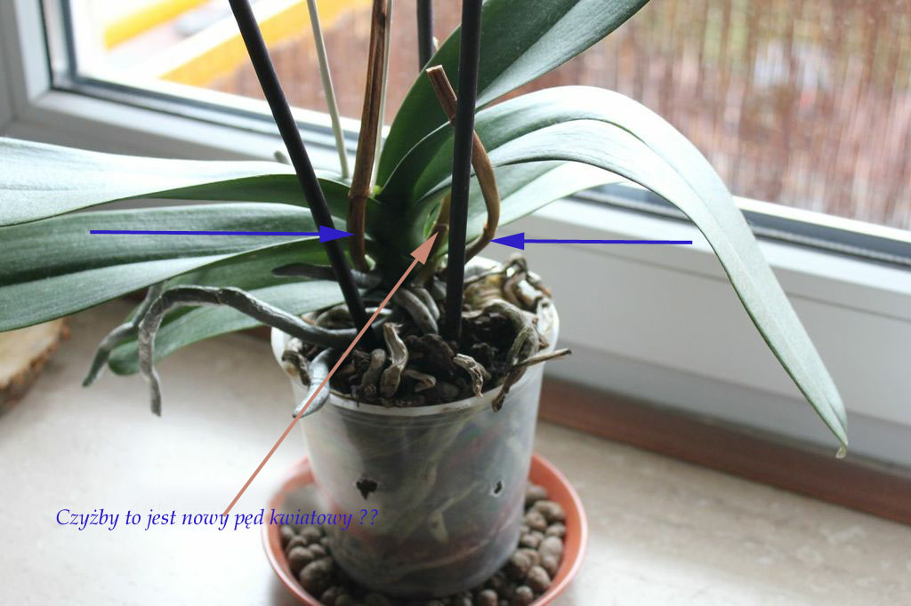 Dziękuję za radę :), właśnie obcięłam pędy. Ta różowa strzałka, niestety to nie nowy pęd, tylko stary uschnięty. A co z górnymi korzeniami? Czy mają być takie suche i pomarszczone? Zastanawiam się czy to nie jakaś choroba...