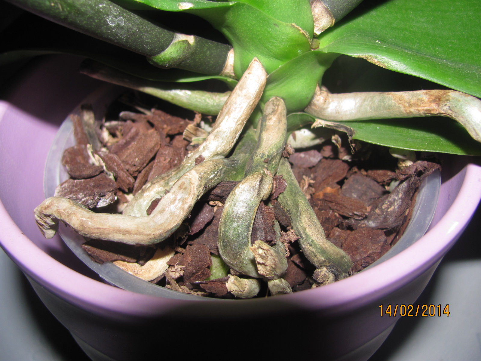Problemy zaczęły się na początku grudnia, rozkwitnięte kwiatki szybko opadały, a pączki nowych kwiatów jeden po drugim usychały. W ciągu dwóch tygodni nie było już w ogóle kwiatów , łodygi zaczęły usychać więc postanowiłem je podciąć. Wszystko wyglądało ładnie , jednak ostatnimi czasy najmniejsze liście najbliżej korzeni są oklapnięte ich barwa zmieniła się są znacznie jaśniejsze od pozostałych. Korzenie które wyrastały nad doniczkę miały barwę srebrną teraz strasznie ściemniały, a nieliczne korzenie w doniczce zaczynają żółknąć.