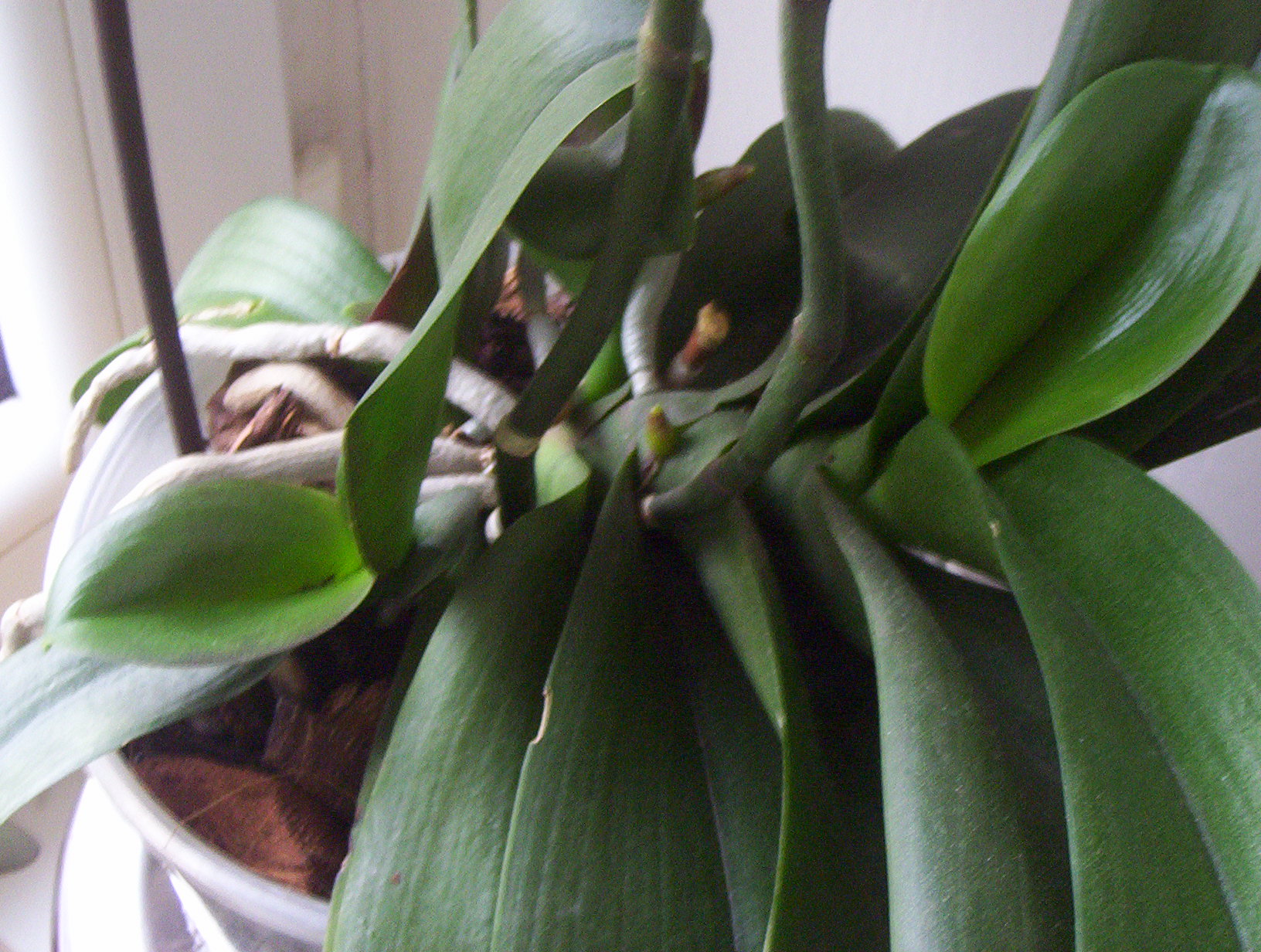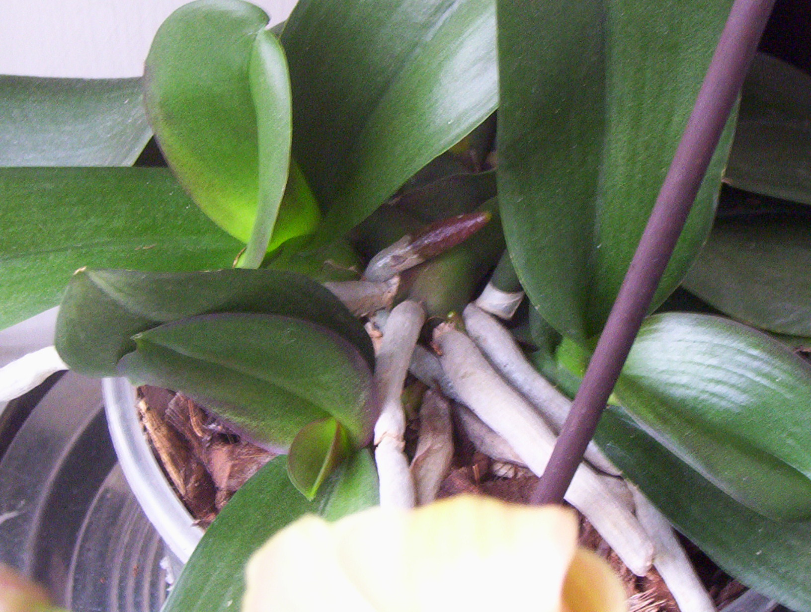 Nie dopuszczaj w takiej sytuacji do kwitnienia, ani do wytwarzania nowego keiki na pędzie.[ ze zdjęcia wnioskuję, że jest to nowe keiki.]