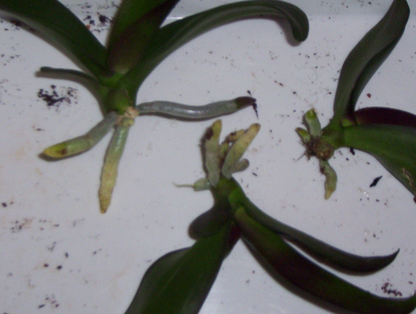 Witam .Maluchy oddzielone od matki .Skłonił mnie do tego ten malutki listek .Myślę że za duże obciążenie dla mamy storczykowej .A oto kilka zdjęć.Powiedz Mario czy dobrze to zrobiłam .Zapewne przekonamy się po jakimś czasie jak zaczną im rosnąć nowe korzonki ale już w podłożu. Pozdrawiam Anna