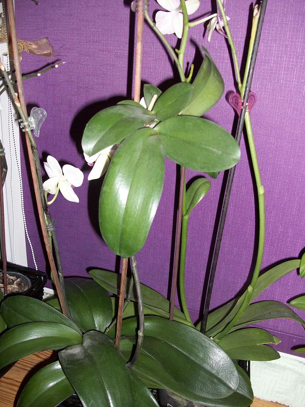Zaczely sie pojawiac keiki na pedzie....dwa! jeden obok drugiego...pozniej trzeci na drugim pedzie! No ale juz stwierdzilam ze nie jest to normalne jak jeszcze dwa sie pojawily na dole przy wzroscie. Myslalam ze to dwa pedy ida, a okazalo sie ze keiki. Z tych dwoch keikow na dole poszly juz po jednym pedzie i z keika na gorze na pedzie poszedl jeden ped! Ten kwiat oszalam a ja sie teraz martwie ze cos nie tak.