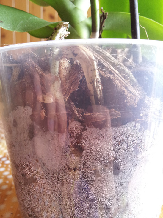 U nich wydaje mi sie, ze korzenie ponad doniczką usychają , mimo że można dostrzec zaparowaną doniczkę wewnątrz... Maja obcięte nad trzecim kolankiem łodyżkę, ponieważ przeszły już okres kwitnienia.