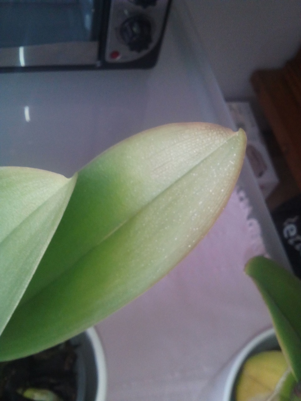 Zdarzają się i wiosną poparzenia niestety. W tym roku zaczęło mi Vandę podpiekać i ją szybko za firankę wstawiłam (wystawa południowa). Jeśli to faktycznie od słońca,zmiany mogą zblednąć ale nie znikną i ani przesadzenie ani nawóz już tego nie odwróci.