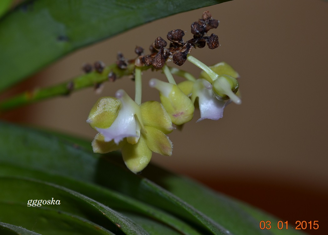 i ta sama roślina jakimś nieludzkim wysiłkiem wyprodukowała pęd teraz zimą, kwiaty o połowę mniejsze (o ilości nawet nie wspominam) ale najciekawszy jest kolor...