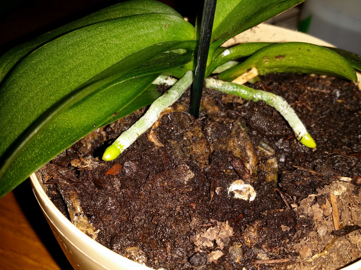 w wakacje dostałam od siostry małego storczyka. Niestety ni w ząb nie wiedziałam, jak się nim zająć, więc postępowałam ze wskazówkami siostry - mało podlewaj, nic więcej. Ale storczyk zaczął więdnąć, odpadły mu listki (zostały chyba dwa). Kilka miesięcy temu przyjaciółka mojej mamy, która ma pokaźną wystawę pięknych storczyków powiedziała, żebym przesadziła storczyka do ziemi ogrodowej, podlewała często, ale mało, to odrośnie. Więc od razu przesadziłam, zaczęłam podlewać odrobinkę co trzy dni, delikatnie przecierałam listki wilgotną ściereczką - czyli zaczęłam robić to, co praktycznie ze wszystkimi moimi kwiatami. Dziś odkryłam, że zaczęło wyrastać kilka długich "cosiów" (trzy z nich w naturalnym świetle są całkiem zielone). To dobry znak, czy jednak coś zrobiłam źle?