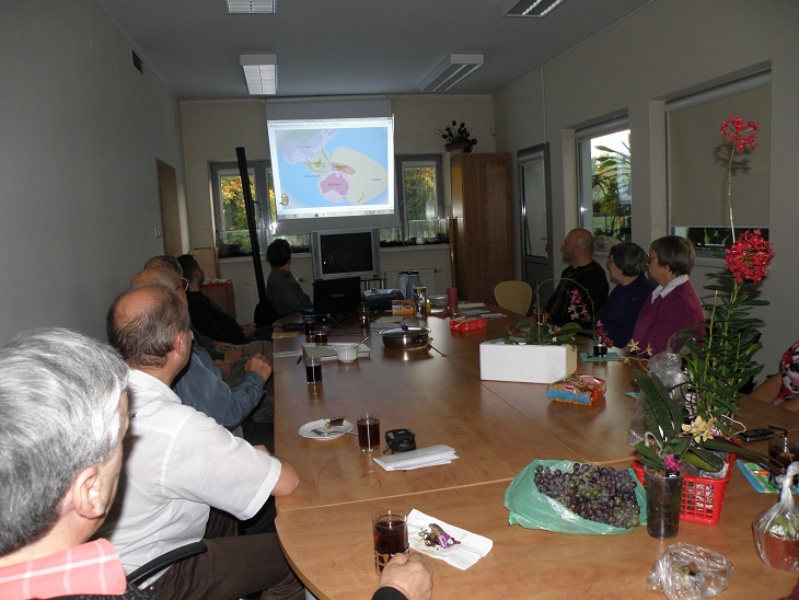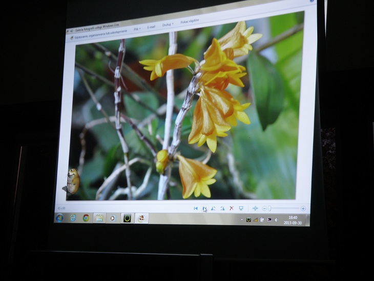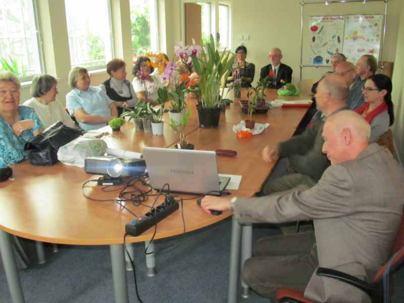 Na ostatnim zebraniu mieliśmy możliwość wysłuchać bardzo ciekawej prelekcji na temat storczyków z podplemienia Aeridinae, którą poprowadził nasz kolega dr Jerzy A. Kopias. Wykład był bardzo interesujący. Jerzy mówił nie tylko o warunkach w jakich sam uprawia rośliny, ale również przedstawił warunki klimatyczne w jakich żyją. Skupił się głównie na ich naturalnym środowisku, położeniu geograficznym i klimacie tam panującym. Wiedza ta bardzo pomaga we właściwym prowadzeniu roślin w warunkach domowych, co owocuje sukcesami w uprawie. Prezentowane przez Jerzego rośliny bez problemu zakwitają w domu. Kwitnienie inicjuje ograniczenie podlewania. Prezentowane były między innymi: Vanda cristata, coerulea, lamellata, a także Phalaenopsis celebensis, wilsonii, lowii...