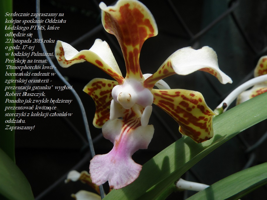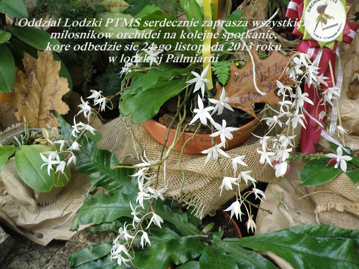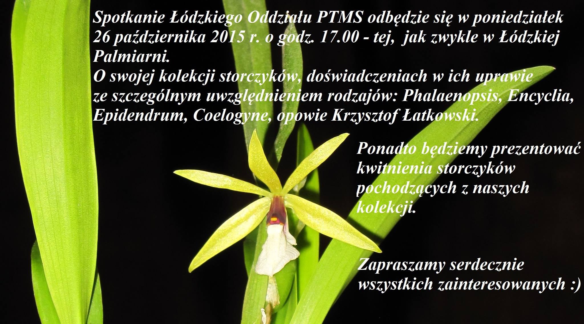 Wszystkich miłośników orchidei zarówno zrzeszonych jak i nie zapraszamy na kolejne spotkanie Łódzkiego Oddziału PTMS, które odbędzie się 30-go listopada (niedziela)