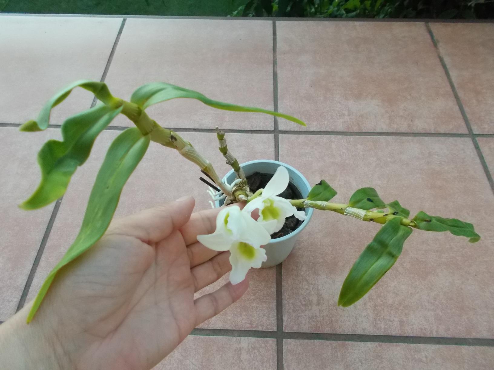 Dostałam jakieś dwa lata temu sadzonkę dendrobium, biedak znióśł u mnie wiele i myślałam, iż z niego już nic nie będzie - przez długi czas stał w miejscu, potem trochę listków uschło, nawet był przypadkowo trochę zalany, a tu po przejściach (myślałam wiele razy, iż już się pożegnamy), proszę nagle pięknie zakwitł, zwłaszcza biorąc pod uwagę jego wielkość i odpukać wypuszcza nowe, jeszcze trudno powiedzieć co, czy keiki czy pąki. Może sam w sobie nie nadaje się jeszcze na pokaz w zakładce kwitnienie ale sami zobaczcie, iż mimo wątłości daje radę, co bardzo mnie cieszy