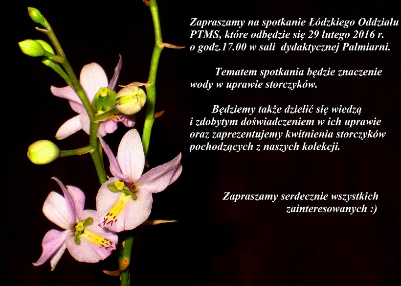 Ponadto omówimy kwestie związane z organizacją spotkania integracyjnego miłośników storczyków w dniu 11-go czerwca, które odbędzie się w Storczykarni w Łodzi podczas trwania wystawy DNI ORCHIDEI 2016.