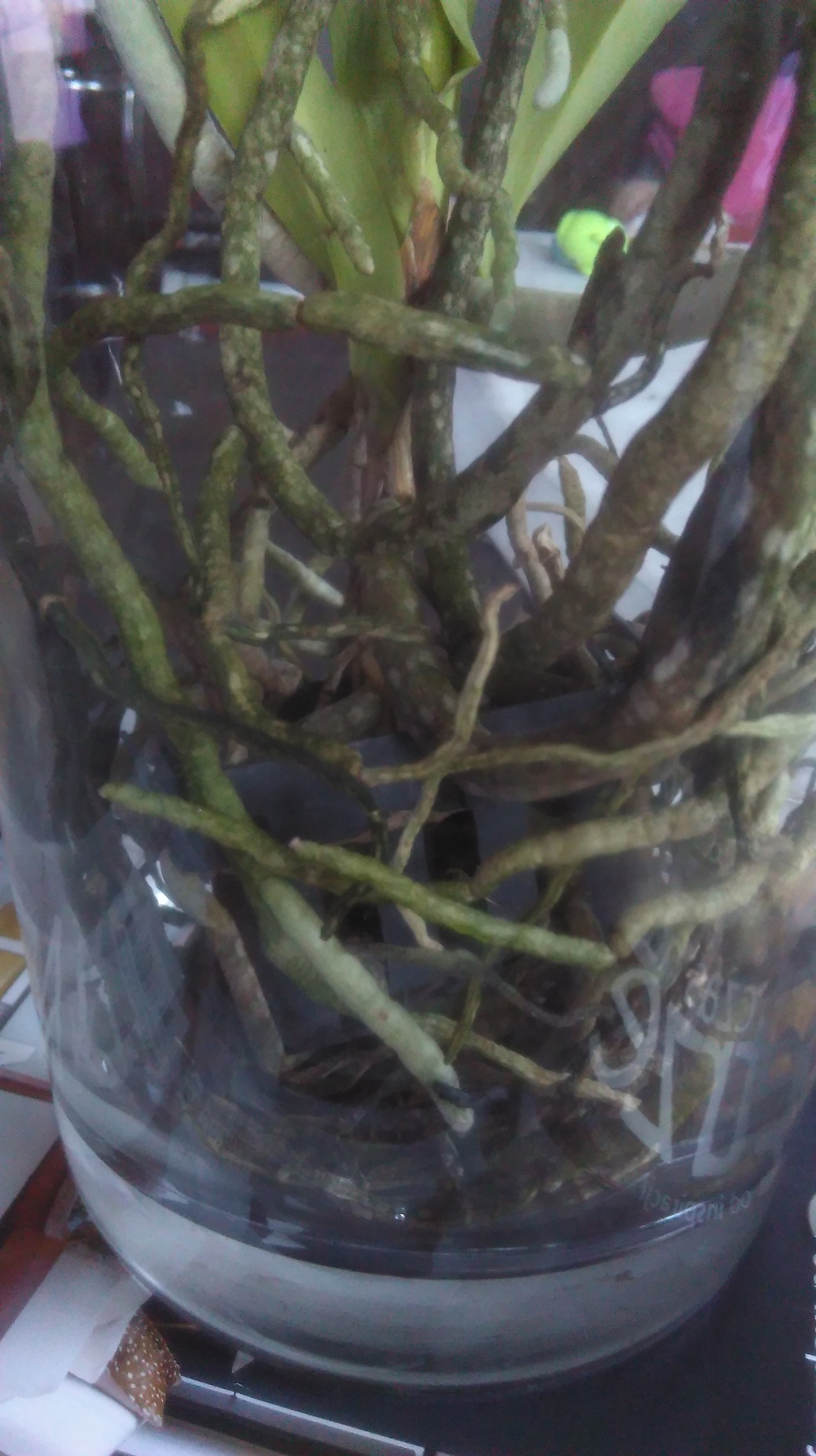 Część korzeni jest bladozielona, a część ciemnozielona jakby zagloniona (termin z akwarystyki, ale z tym mi się kojarzy)..