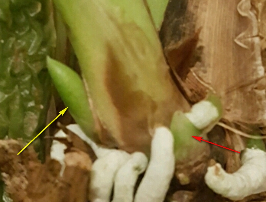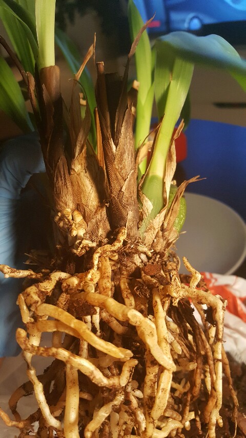 Marta przychodzę z nowymi dobrymi wieściami. Młode przyrosty zaczęły wypuszczać korzonki. Nie za szybko?. Co teraz... co teraz .? . Mam zwiększyć podlewanie i podnieść wilgotność.?. Teraz to się dopiero denerwuje. Myślałam że nic z niego nie będzie przez to zbrązowienie bulw i później ich całkowite uschnięcie na wiór. A tu taka miła niespodzianka. Dodaje zdjęcia jak to wygląda na dzień dzisiejszy.