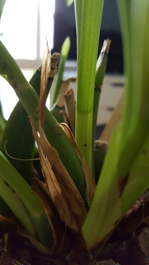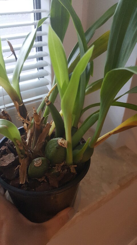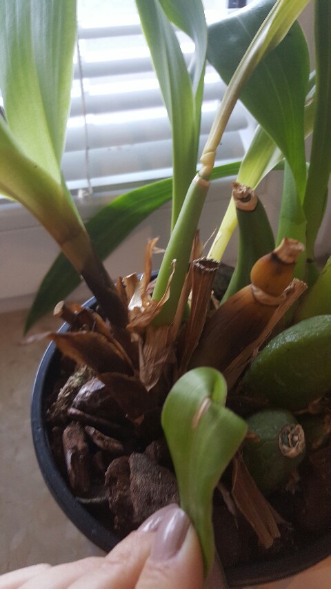 Marta wracam do Ciebie jak bumerang. Nowe rzeczy się zadziały. Z tego cienkiego przyrostu wychodzą dwa cycki. Jeden szpiczasty drugi płaski. Zastanawiam się czy to nowe pseudobulwy.? Boję się, że ten cienki przyrost nie da rady ich wykarmić.