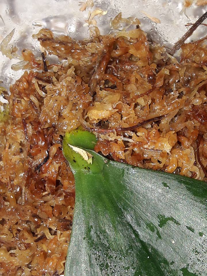 Wybrałam antybiotyk w kapsułkach, łatwy do rozpuszczania. Od razu się przyznam - nie zrobiłam rozpoznania, co do jego skuteczności w stosunku najczęstszej przyczyny zgnilizny bakteryjnej - Erwinia sp. Gdybym to zrobiła, uznałabym, że nie jest to właściwy specyfik (z ulotki wynikło później, że działa na bakterie Gram (+) i beztlenowe Gram (-), podczas gdy Erwinia sp. należy do Enterobacteriaceae, czyli jest pałeczką tlenową Gram (-)). Nieświadoma tego rozpuściłam 1 kapsułkę w niewielkiej ilości wody, namoczyłam w tym roztworze trzon i przetarłam liść z obu stron, pozwalając antybiotykowi wyschnąć na powierzchni. Po tym zabiegu umieściłam liść w misce szklanej wypełnionej wilgotnym sphagnum (woda RO).