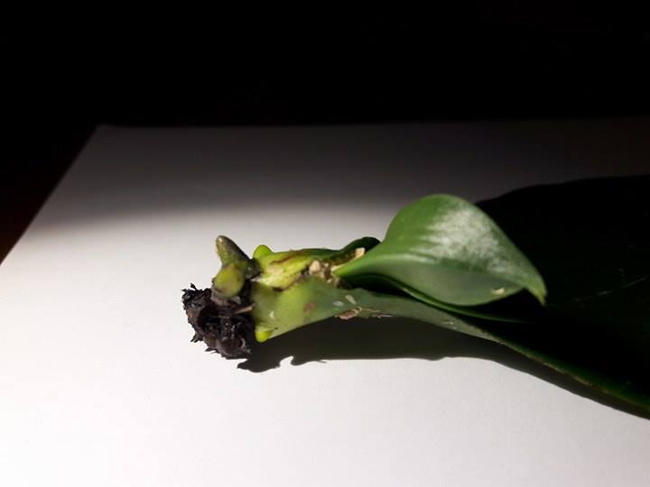 Pęd kwiatowy i 2 pierwsze liście sybciutko usunęłam, ale zgnilizna nie dała za wygraną, ujawniła się na kolejnych liściach. Usunęłam więc następne.