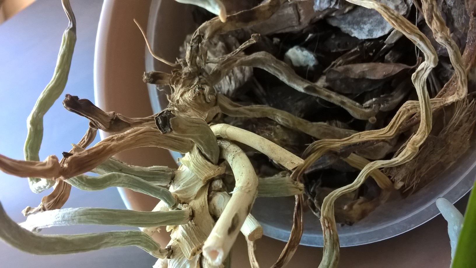 chcę uratować mojego najstarszego i najbardziej wdzięcznego storczyka. Mam go od ponad 6 lat albo i dłużej. To od niego zaczęła się przygoda. Co stało się z korzeniami widać na zdjęciu. Przesadzałam go już 2 razy. Ostatni raz około rok temu (maximum 2 lata). Nie mogłam całe lato go tknąć, bo kwitł. Od początku od kiedy go mam zwykle ma więcej kwiatów niż liści.