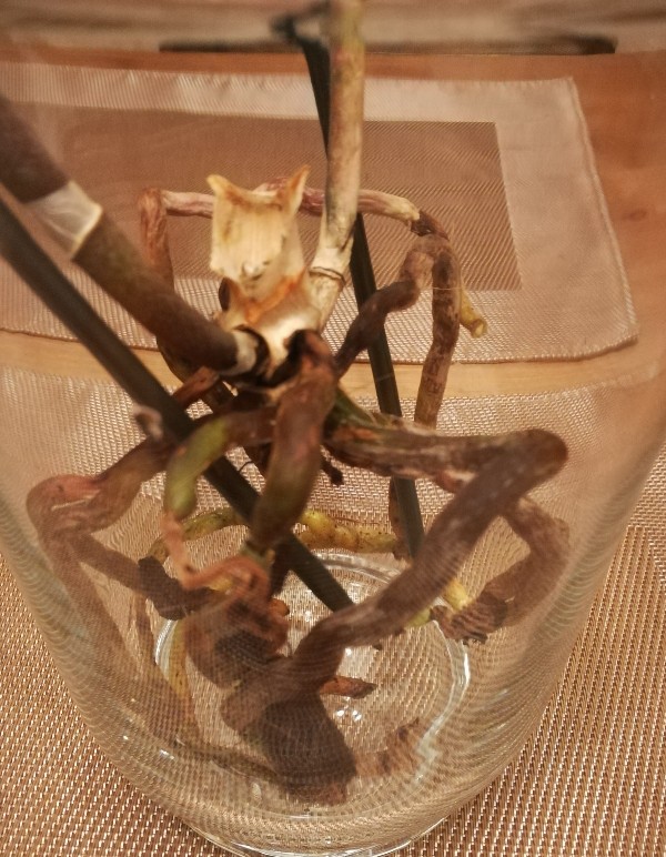 Tak jak pisałam w tytule - storczyk zgubił wszystkie liście, ostatni odpadł przed chwilą , więc w akcie desperacji zrobiłam mu kąpiel wodna i wyrzuciłam cała korę, odcielam też puste i podgnile korzenie i wstawilam go w szklany wazon. Nie wiem kompletnie co mam z nim teraz zrobić.