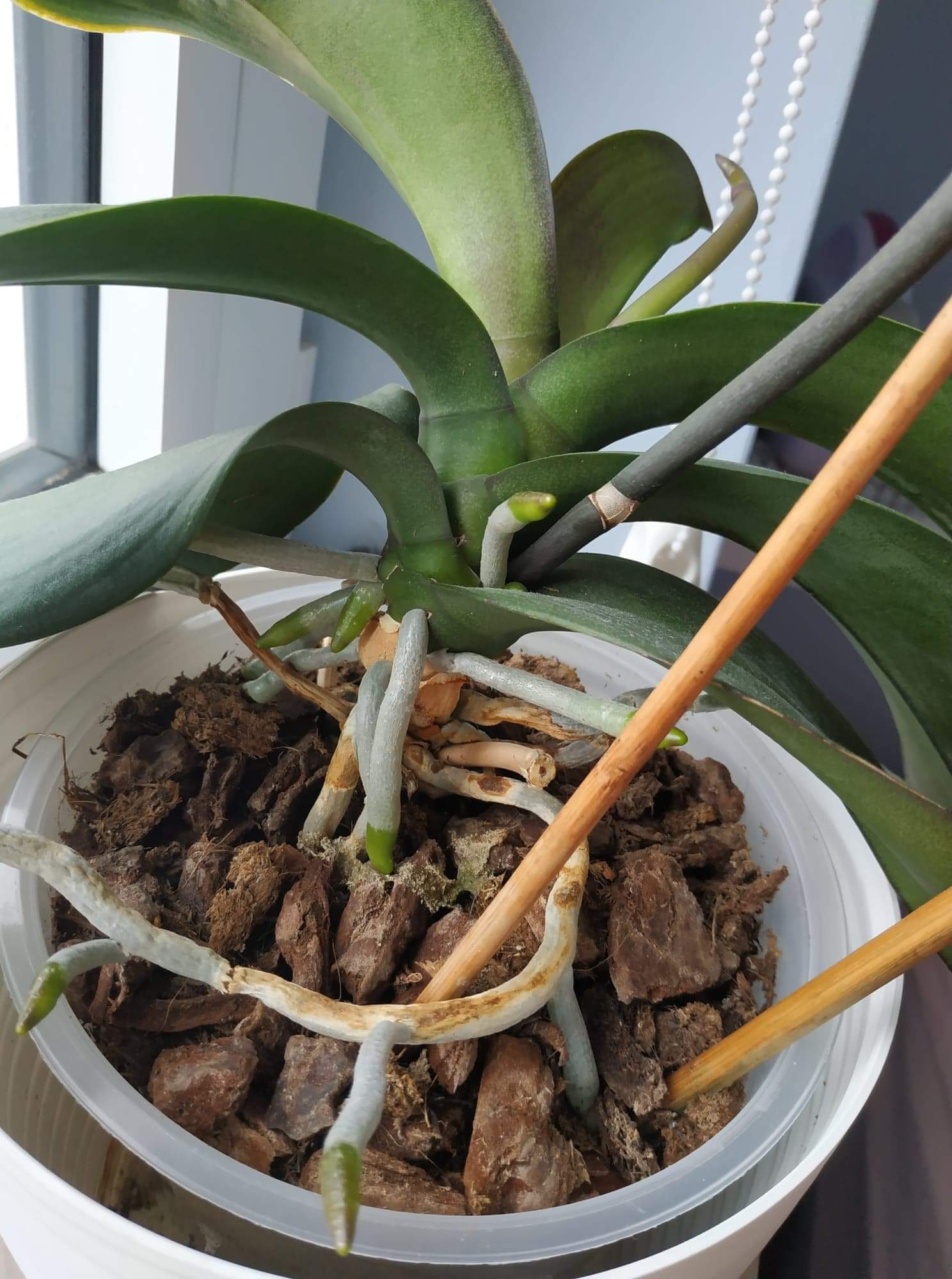 Niestety, trzeba zastosować to działanie do wszystkich. Generalnie storczyki potrzebują bardzo małe dawki nawozów, zwykle stosujemy nawożenie naprzemiennie z podlewaniem czystą wodą. Teraz jest właśnie idealny czas na przesadzanie storczyków w nowe podłoże.