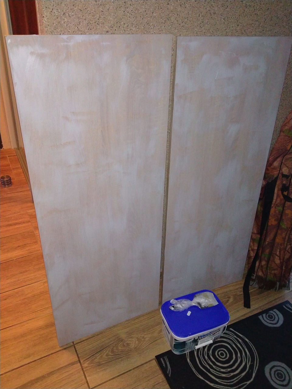 Elementy przed montażem okleiłem krawędzie okleiną i pomalowałem częściowo folią w płynie.