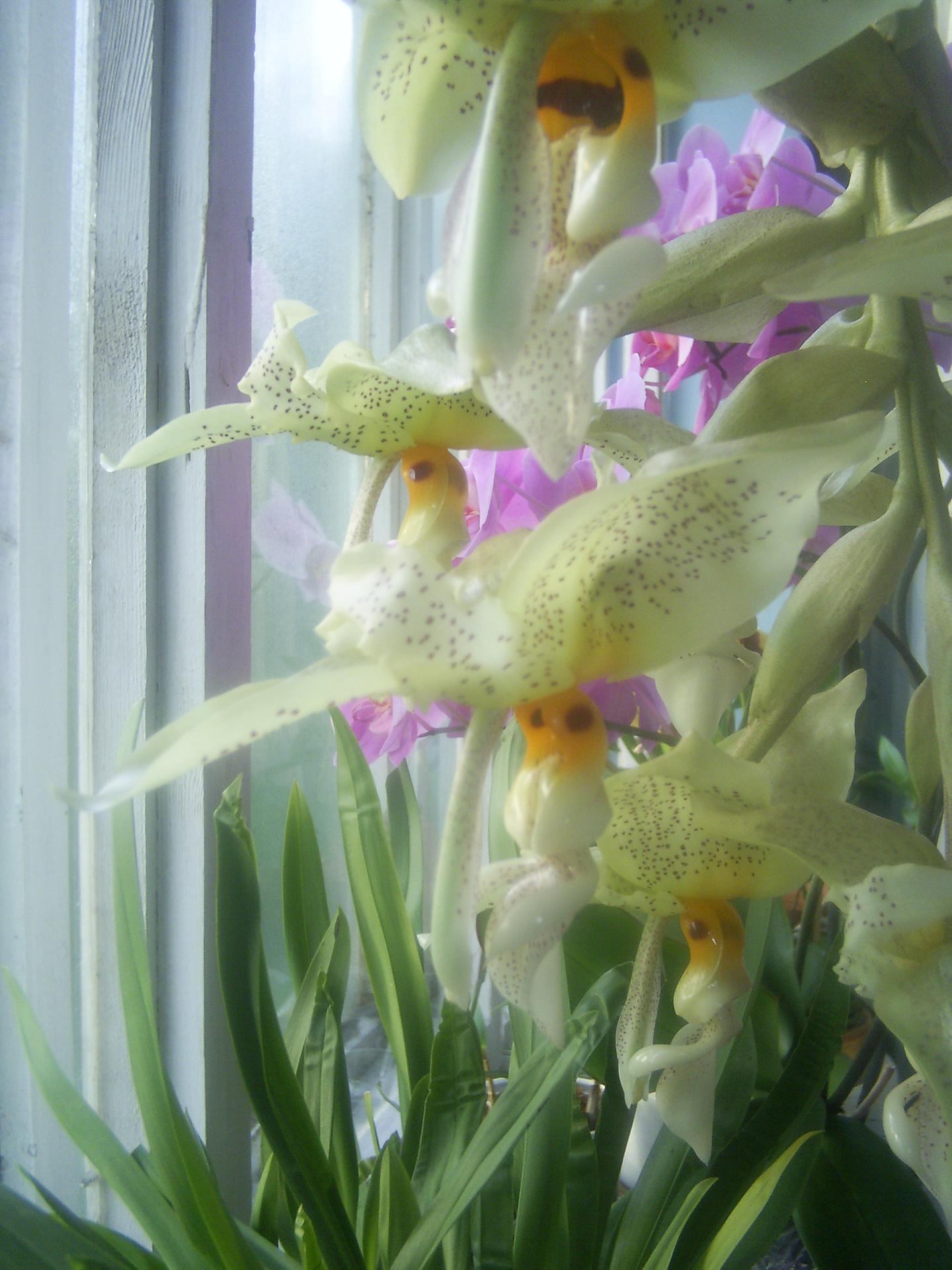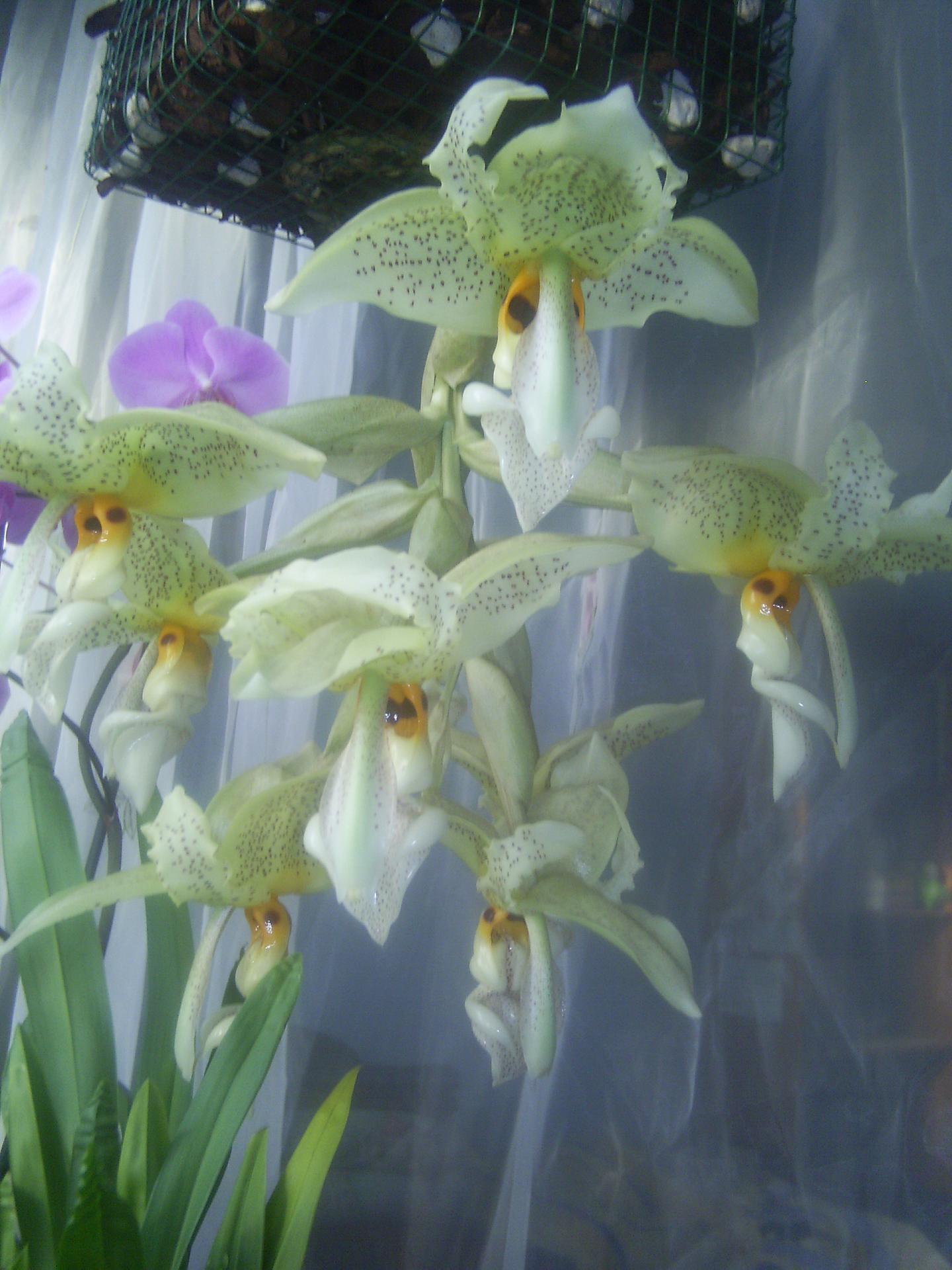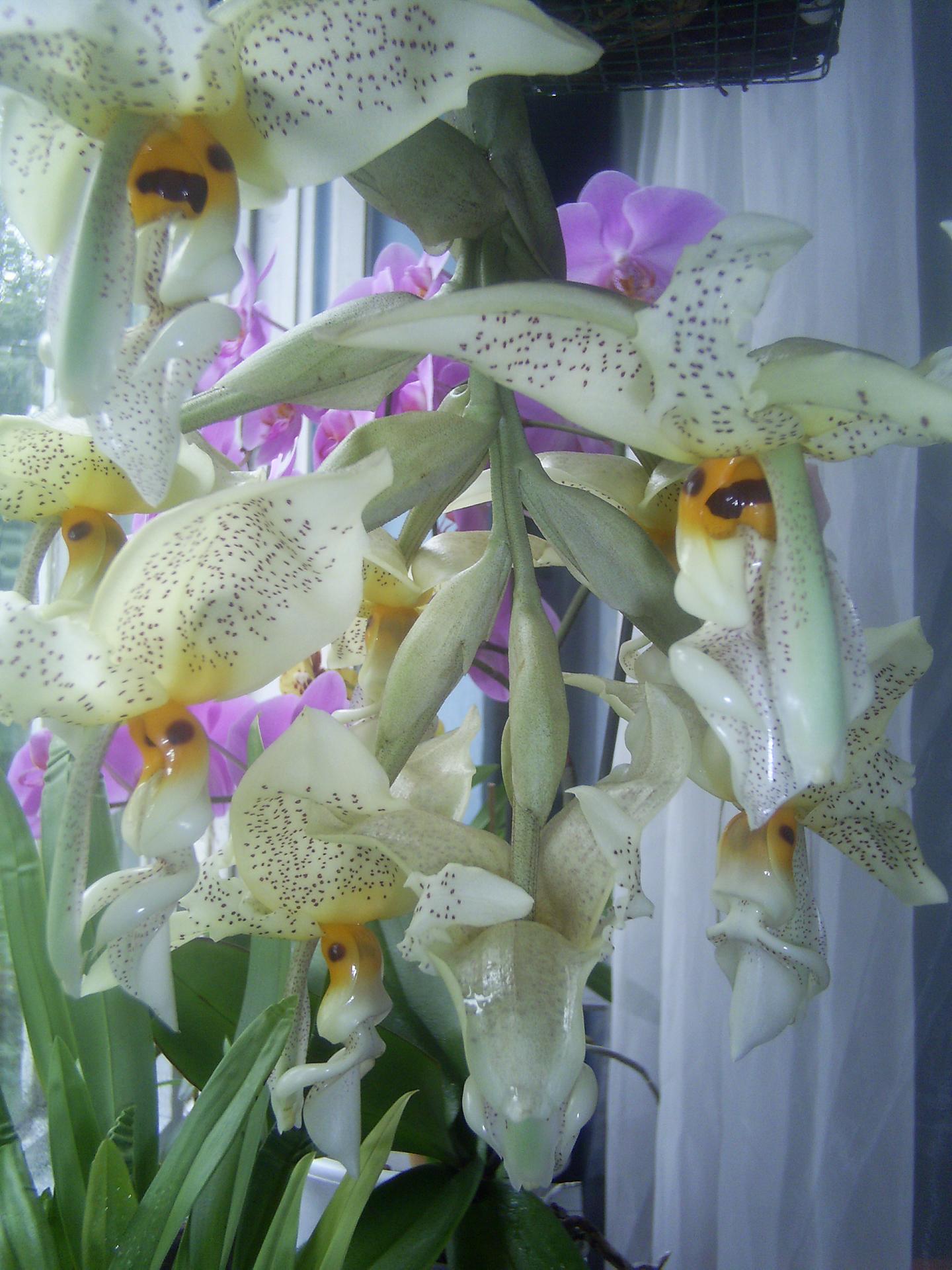 Teraz o uprawie: nigdy nie poświęcałem tej roślinie szczególnej uwagi. Podłoże to sama kora, koszyk wymoszczony jest torfowcem. Nawożę dość obficie różnymi nawozami do storczyków, zależy, jaki nawinie mi się pod rękę. Nie wolno rośliny przesuszyć, bo wtedy na liściach pojawiają się szpecące plamy (choroba fizjologiczna). Jeśli chodzi o temperatury, to jest raczej chłodno-latem maks. 25 st. C, zimą nawet 10. W 2010 Stanhopea postanowiła zwiększyć masę, wytwarzając 7 pseudobulw, kwitnienia się jednak nie doczekałem. Cykl ich wzrostu i dojrzewania jest powolny-mam nadzieję, że w tym roku zostanę zaszczycony chociaż jednym pędem kwiatostanowym. Pozdrawiam i polecam tą bezproblemową roślinę (choć rozmiary ma słuszne-liść z ogonkiem dochodzi do 70 cm)-Michał