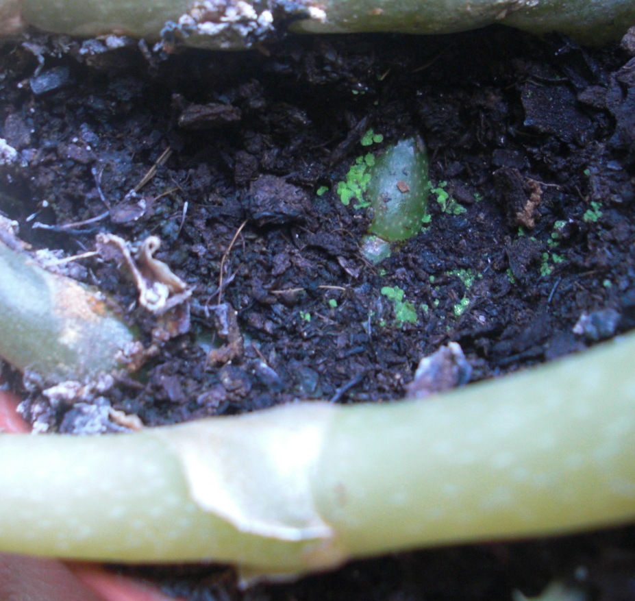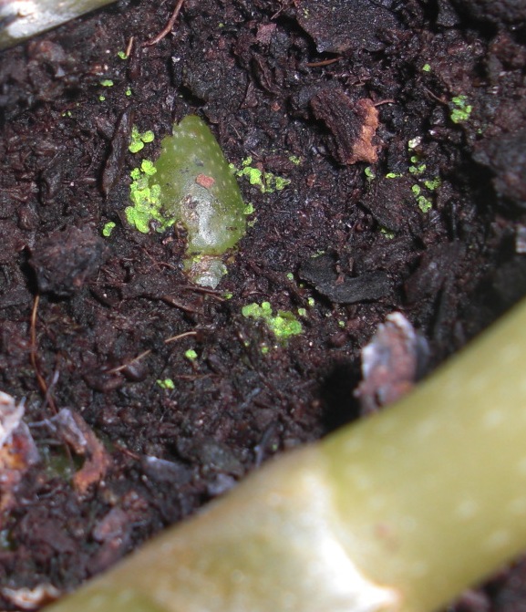 Wyjechałam na dwa miesiące i niedawno wróciłam. Zaglądając do doniczki z Ludisią zobaczyłam coś dziwnego. Ma niesamowity fluorenscencyjny kolor, bardziej zielony niż żółty i świeci