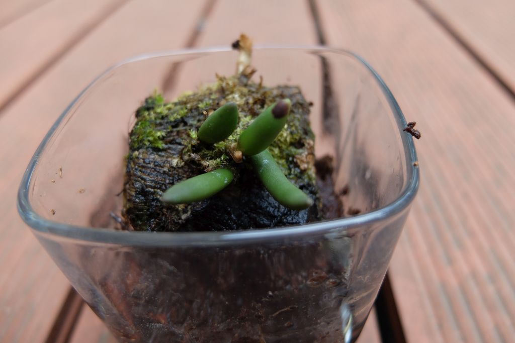 Ponieważ w akwarium, przy sztucznym oświetleniu, roślince się nie podobało pomyślałem, że spróbuje innych warunków i przeniosłem maluszka do szklanki po whisky