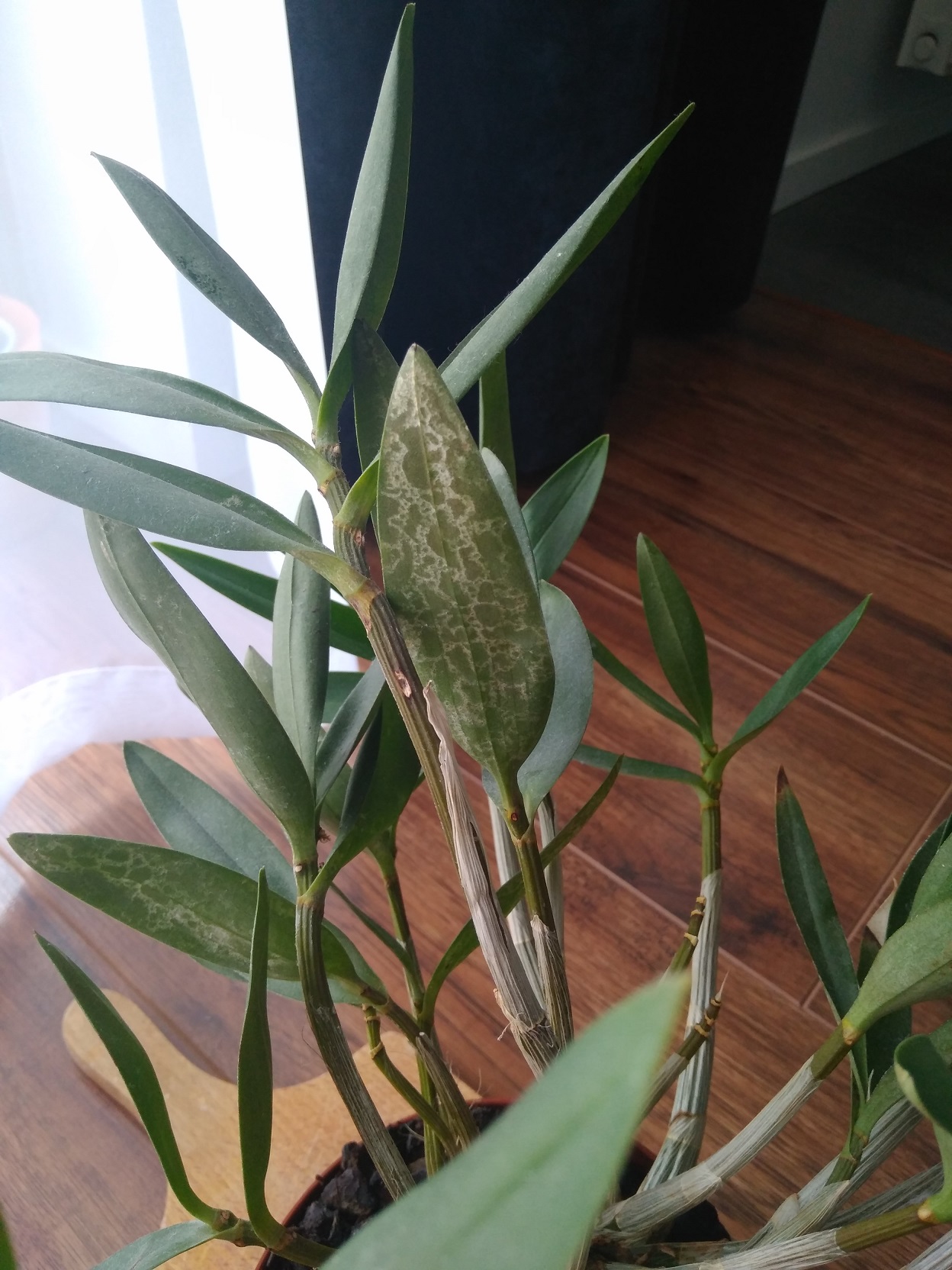 Ale z powrotem do tego ostatniego zdjęcia spodniej części liści... to co widzę to storczyk jest zaatakowany czymś. Jeśli jesteś pewna że to nie tzv falsk spin (orientalne przędziorki... ich nie widać bez silnego szkła powiększającego i brak też pajęczyny)... i jeśli jesteś pewna że to nie wirusowa infekcja na którą nie ma ratunku... to możliwe jest że twojemu storczykowi brak Magnesium.
