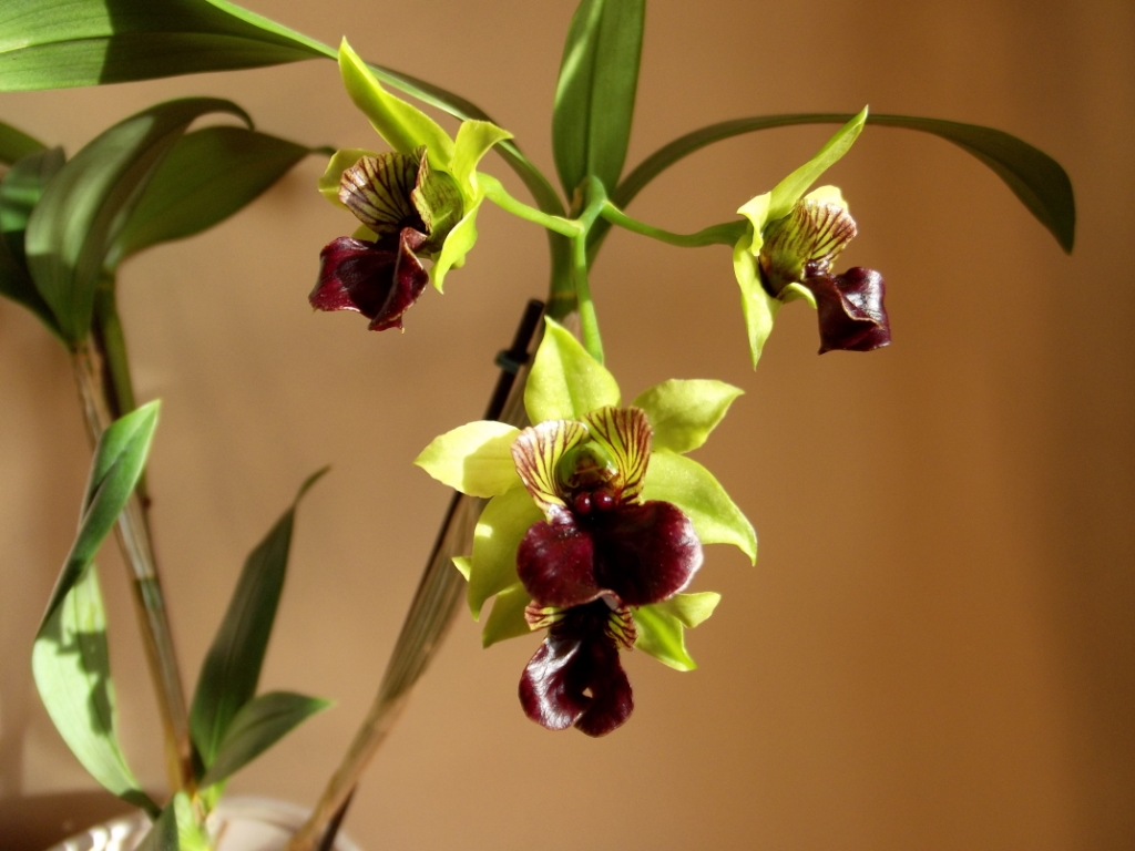 wiosną - latem trzymam na parapecie wschodnim, na zimę przenoszę na parapet południowy,żaby zaspokoić potrzeby słoneczne w tym okresie. To gatunek z sekcji Latouria, więc pędy mogą pojawić się z kilku miejsc na pseudobulwie - stąd tak częste kwitnienia :) Roślina nie przechodzi spoczynku zimowego,należy ją podlewać cały rok podobnie, oczywiście uwzględniając warunki i aurę zimą. W okresie wegetacji wody powinien mieć pod dostatek,tak,żeby psb były pękate. Generalnie bezproblemowa ;)