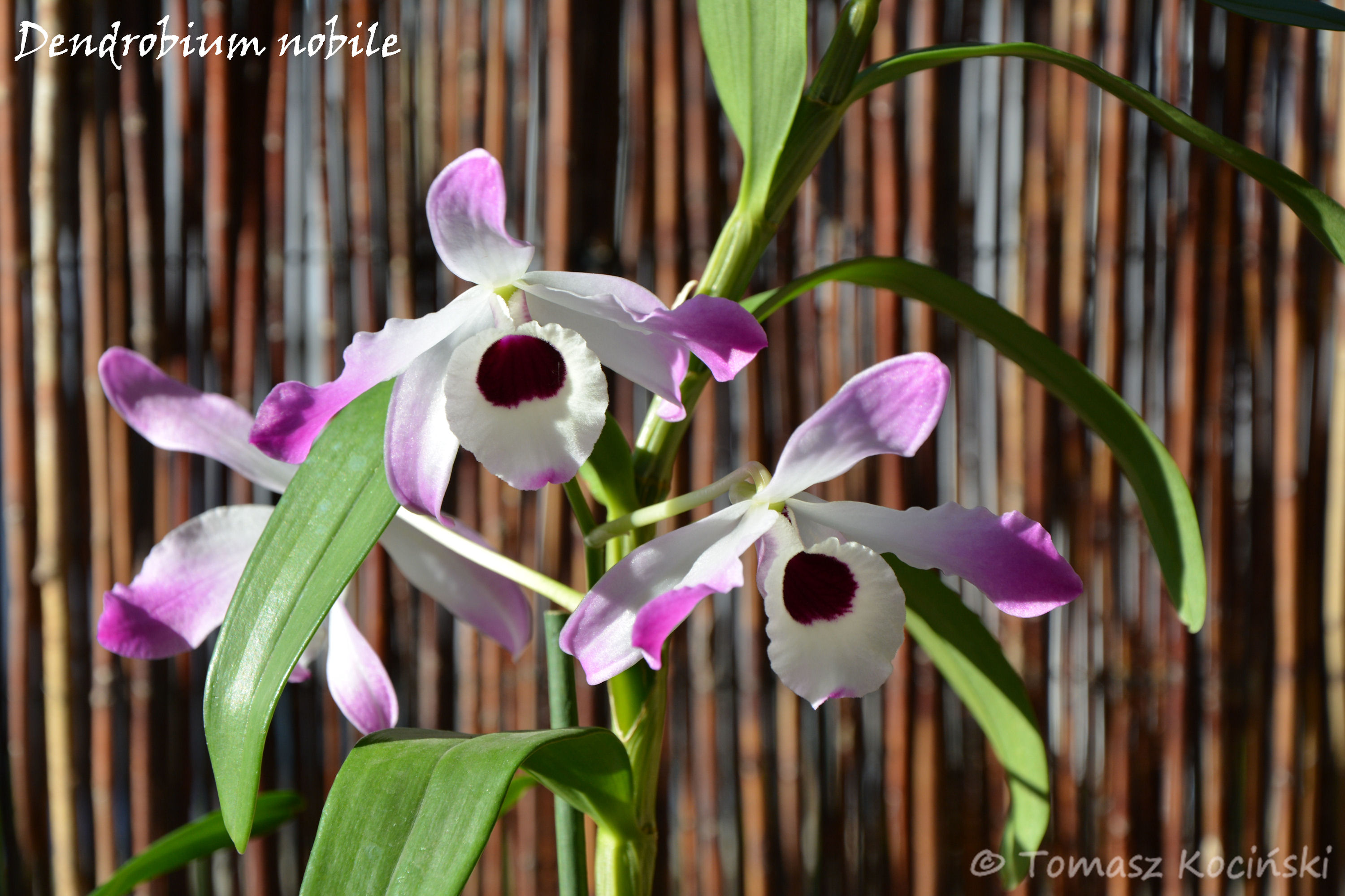 Pierwsze kwitnienie mojego D. nobile. Kwiatów było więcej. Ale ... ubiegły mnie ślimaki, które uszkodziły w dużym stopniu większość z pąków . Trochę jestem zaskoczona kwitnieniem o tej porze. Czyżby wysokie temperatury w szklarence pobudziły kwitnienie?