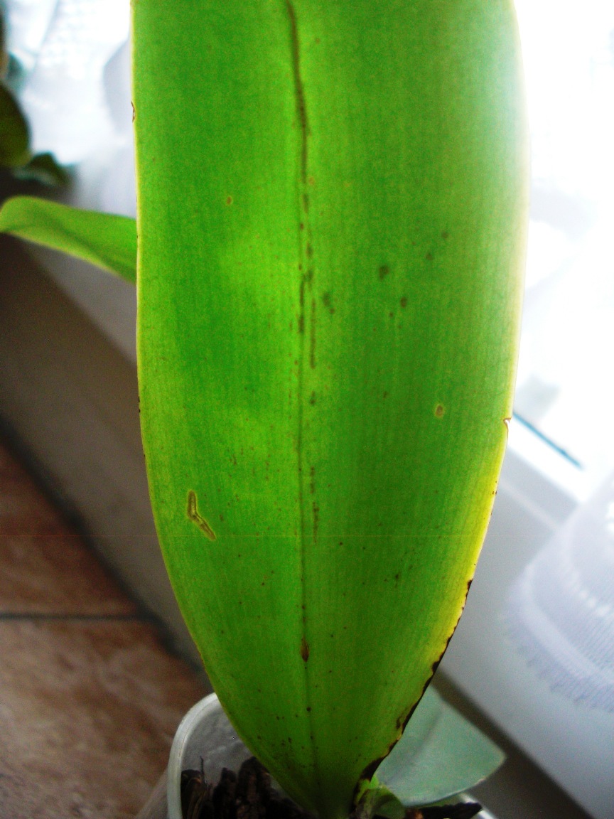Kupiłam przez internet dwa storczyki botaniczne: phalaenopsis equestris i mannii. Ph. mannii był w przecenie. Wczoraj dotarły do mnie i zauwazyłam że ph. mannii ma na jednym liściu od spodu takie zgrubienia i przetarcia. Nie wiem czy to jest jakaś choroba czy powstało w wyniku mechanicznego urazu. Brzeg liścia jest żółty i zaczyna czarnieć u podstawy. Proszę o pomoc. Nie wiem czy ten storczyk jest zdrowy i czy ma takie liście czy coś mu dolega. To są moje pierwsze storczyki botaniczne. Mam kilka ph. hybryd ale wszystkie mają zdrowe liście i nigdy nic takiego u nich nie widziałam.