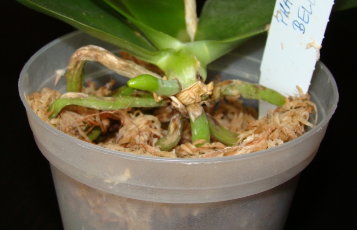 Zastanawiam się czy nie wymienić Phalaenopsis bellinę. Roślina zdrowa, z dobrze rozwiniętym systemem korzeniowym, zdolna do kwitnienia ( zakupiłam ją w lutym 2010 roku), niedawno wymieniony mech. U mnie rośnie zdrowo, ale nie chce kwitnąć, tzw wypuszcza pęd kwiatowy , który nie przyrasta ( można go wypatrzeć na zdjęciu), próbowałam wszystkich sposobów, widać nie jest temu kwiatowi u mnie dobrze.