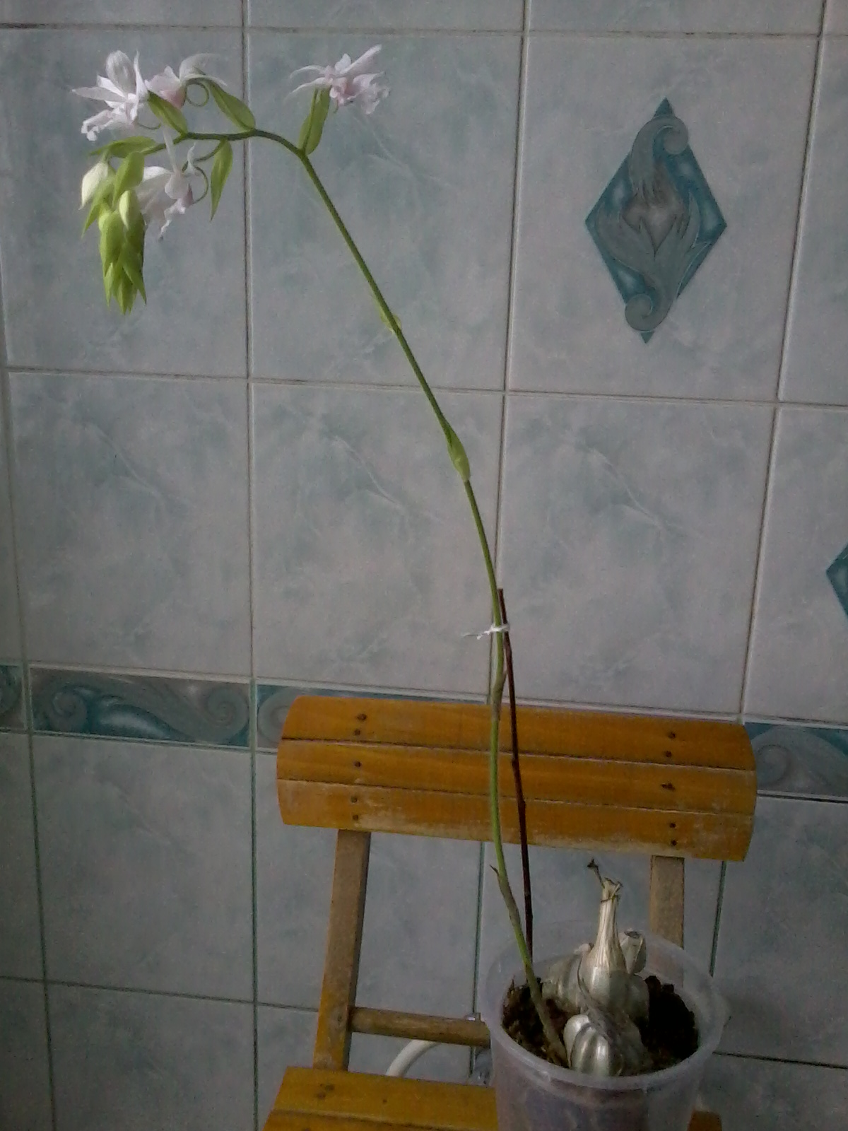 Z opisu wynika, że pęd kwiatowy bardzo szybko rósł, biorąc pod uwagę jego wysokość. Dodatkowo robi wrażenie to, że łodyga kwiatowa tworzy się przy "śpiącej" pseudobulwie.
