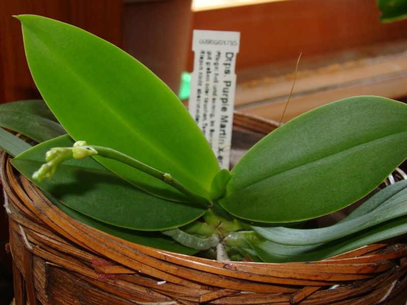 Kolejna nowośc do Dtps. Purple Martin X equestris 2n blue. Roślina bardzo szybko się zaaklimatyzowała, pojawia się dużo nowych korzeni. Wkrótce będą kwiaty, jest też kolejny pęd kwiatowy ale jeszcze bardzo mały.
