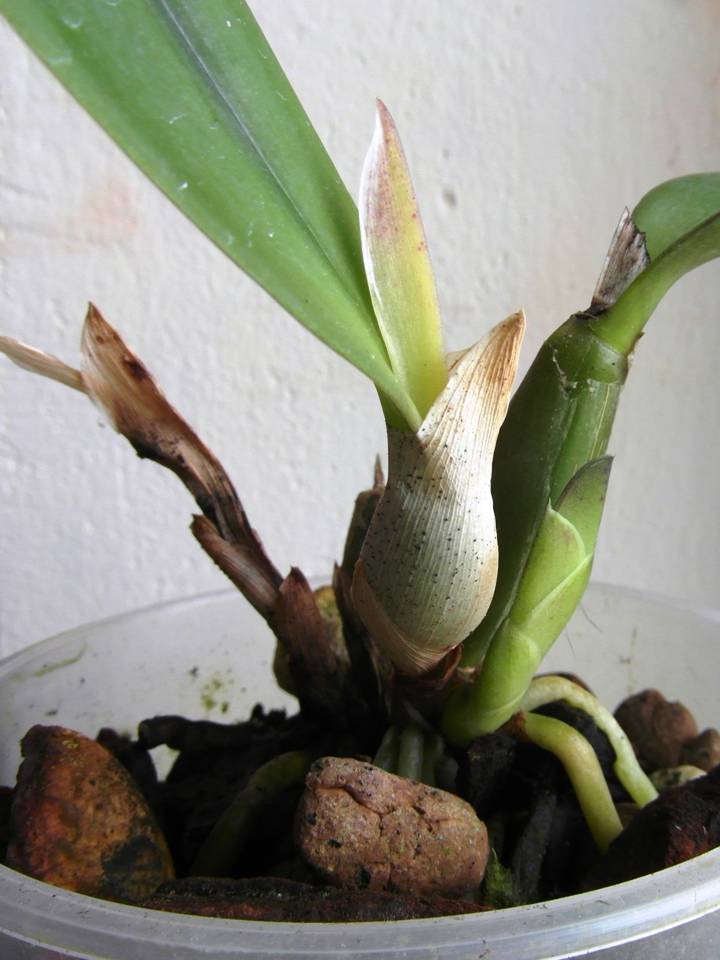 Pierwsza rosła tak ładnie i dynamicznie, że w czerwcu posadziłam ją do normalnego podłoża, ale trafiła do ciepłego i wilgotnego akwarium.Z 4 psb jedną(tą, która służyła rozmnożeniu) zasuszyła całkowicie, na jednej zgubiła liść.Obecnie równolegle z młodej psb wypuściła pochewkę, rośnie kolejny przyrost i korzenie