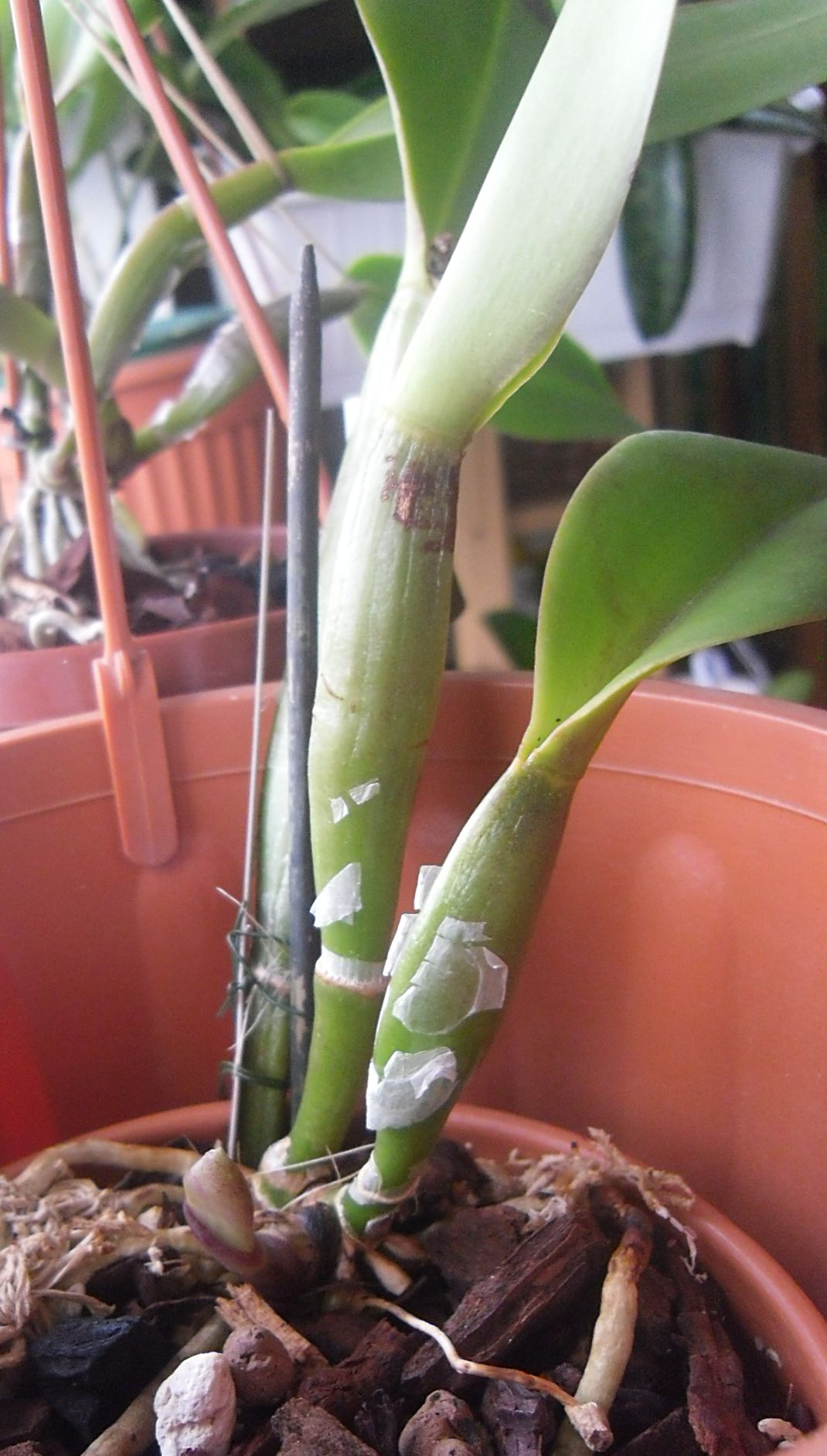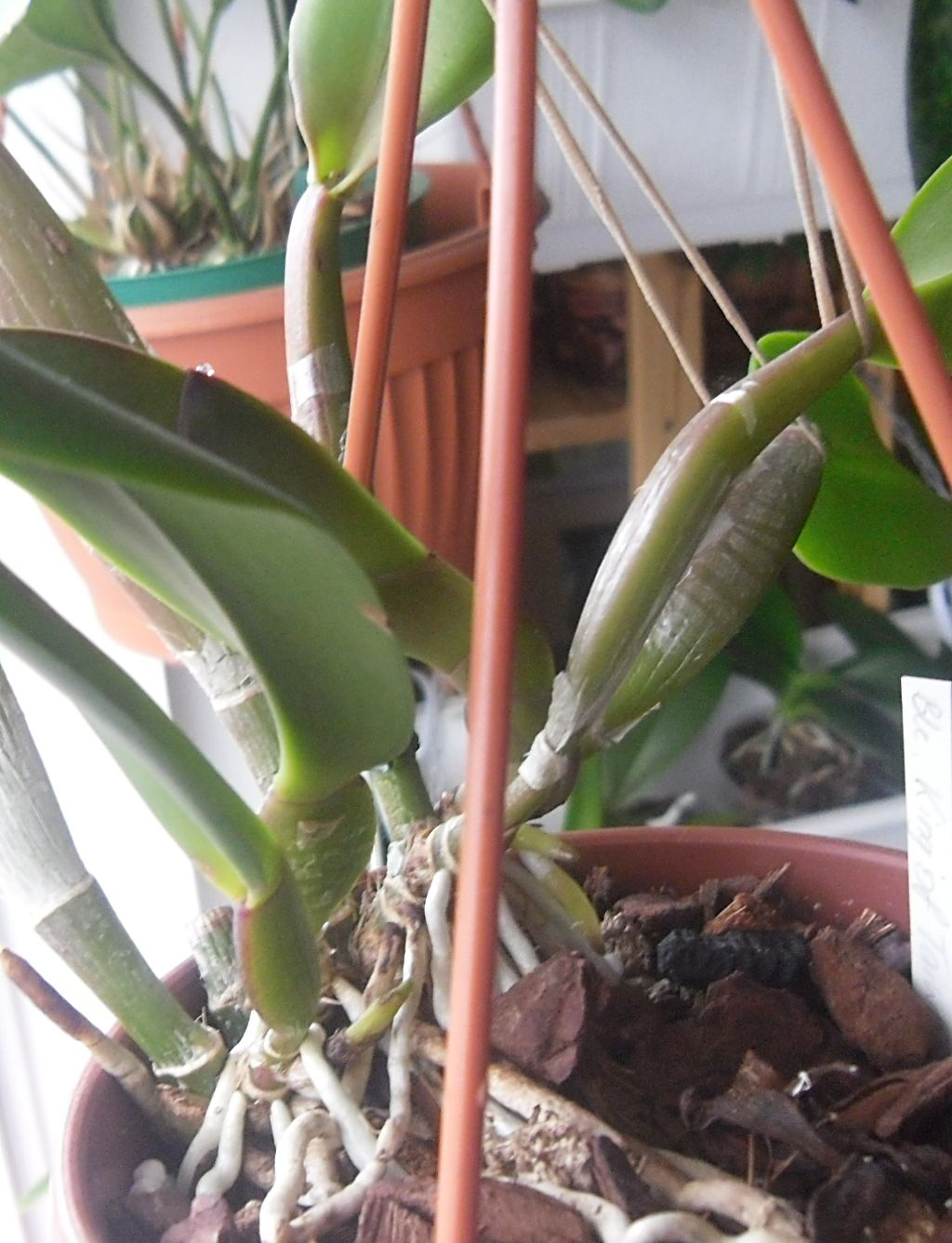 C. mossiae - przez chwilę miałam nadzieję, bo nowa psb rosła wyraźnie grubsza niż ubiegłoroczna. No cóż....Może za rok...
