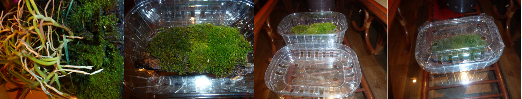 Na pierwszym obrazku rośnie sobie Epidendrum peperomia zwolenniczka mokrych stóp, co sprzyja także mchowi.