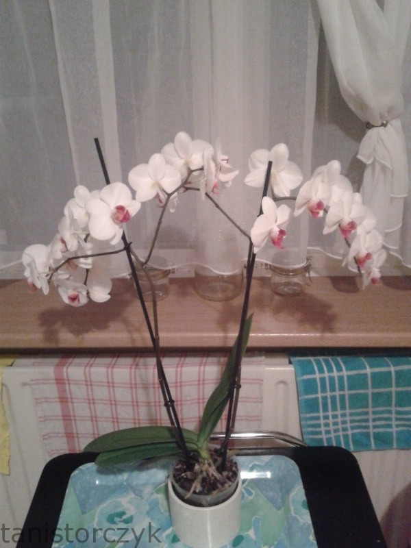 Te dwa falenopsisy są piękne.Gratuluję tak długiego kwitnienia.