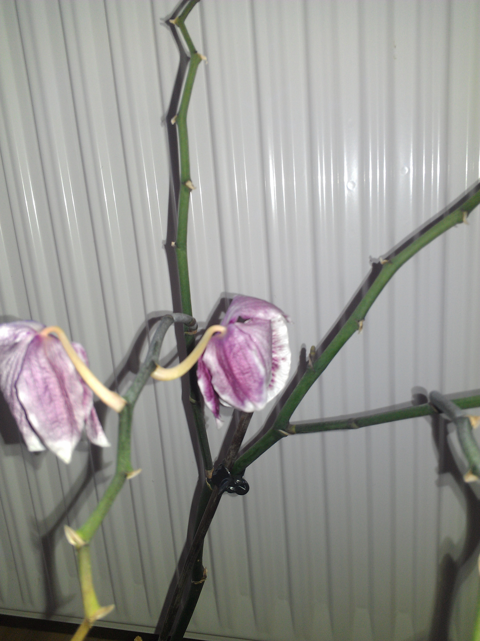 Nie obcinam pędów dopóki same nie zaschną i dzięki temu niekiedy mam po dwa i nawet więcej pędów kwitnących na jednym Phalaenopsis. Niektóre zaś przed wypuszczeniem następnego same zasuszają poprzedni i myślę, że tutaj w grę już wchodzą geny czyli rodzice.