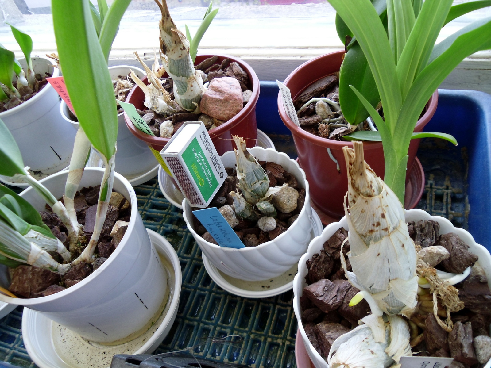 Catasetum fimbriatum chyba nie zdąży przejść okresu spoczynku bo straciło tylko dwa liście, dwa są całkiem zielone, pomimo tego że wszystkie dostawały słownie po kropelce wody raz na tydzień. Nawet psb nie kurczy się.