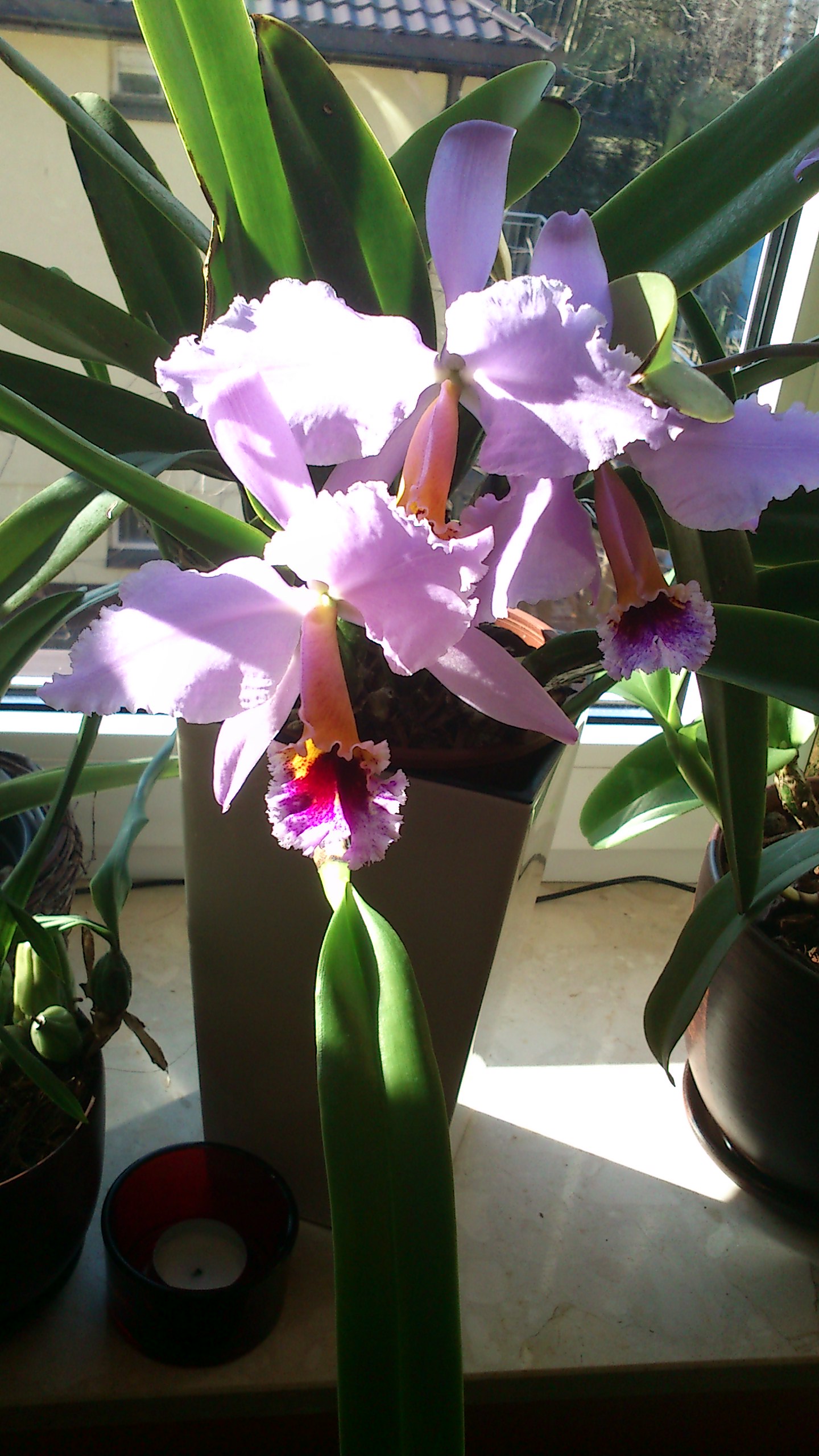 Jest piękna! Może kwiaty nie olbrzymie, ale bardzo ładnie ukształtowane. Zazdroszczę obfitego kwitnienia. Też się w tym roku pokusiłam na nią, ale eksperymentalnie kupiłam słoiczek z siewkami w agarze. Aklimatyzują sie powoli, ale na kwitnienie poczekam pewnie parę lat...W tak zwanym międzyczasie będę podziwiać Twoją