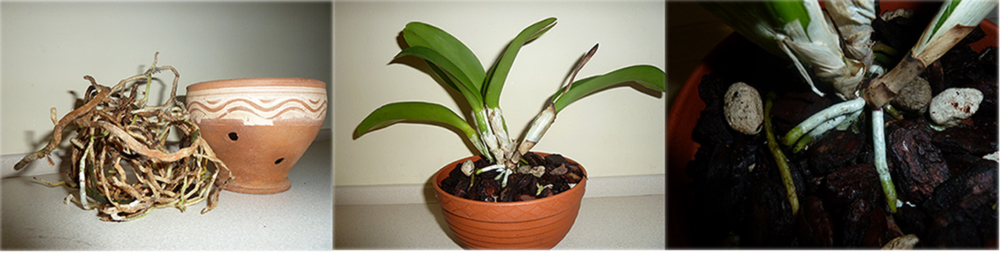 Tak a propos późnej wegetacji katlejek, w moim przypadku roślina z grupy Chian zasuszyła pochewkę i ruszyła w korzenie. Ponieważ w ceramicznej doniczce zrobiło się ciasno postanowiłem przesadzić ją i przy okazji zrobić porządek z korzeniami. kliknięcie powiększa fotki