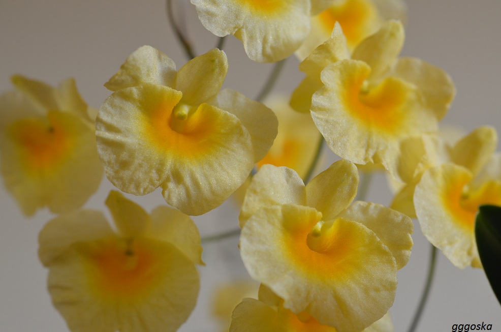 U mnie zakwitły 2 ciekawsze (przynajmniej według mnie ) storczyki spośród tych oświetlanych z użyciem LED (jest to dla nich jedyne źródło światła, diody są zimnobiałe uzupełnione ciepłobiałymi w stosunku 4:1, moc diod na poziomie ok. 5 W, odległość 30 cm od rośliny, zamontowane soczewki skupiające o kącie 30 stopni ):